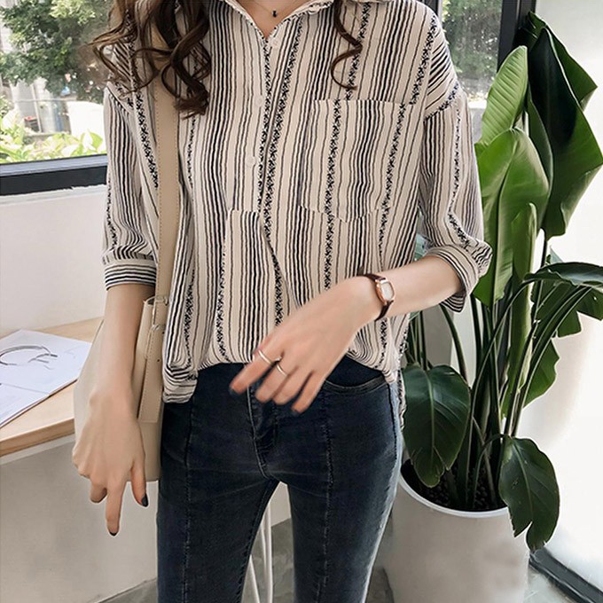 ブラウス シャツ トップス ストライブ レディースファッション 続々登場 ピンク ホワイト M L XL 2XL 3XL 4XL