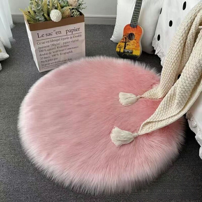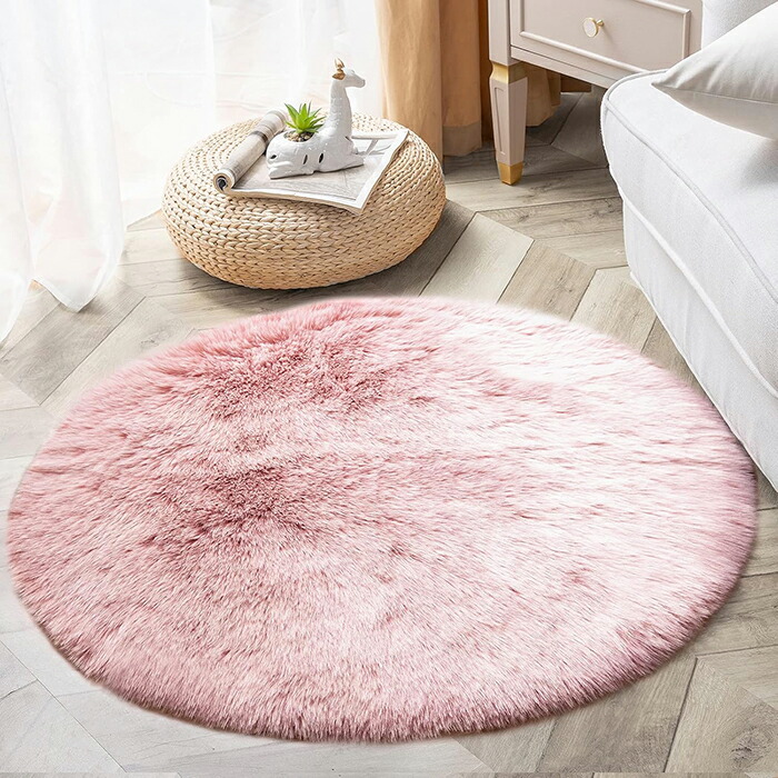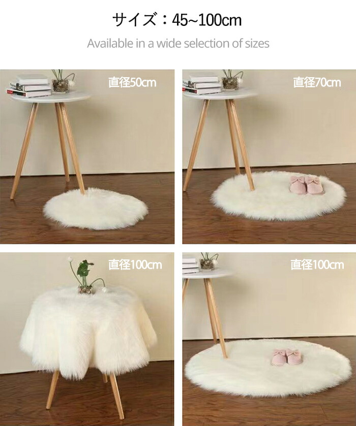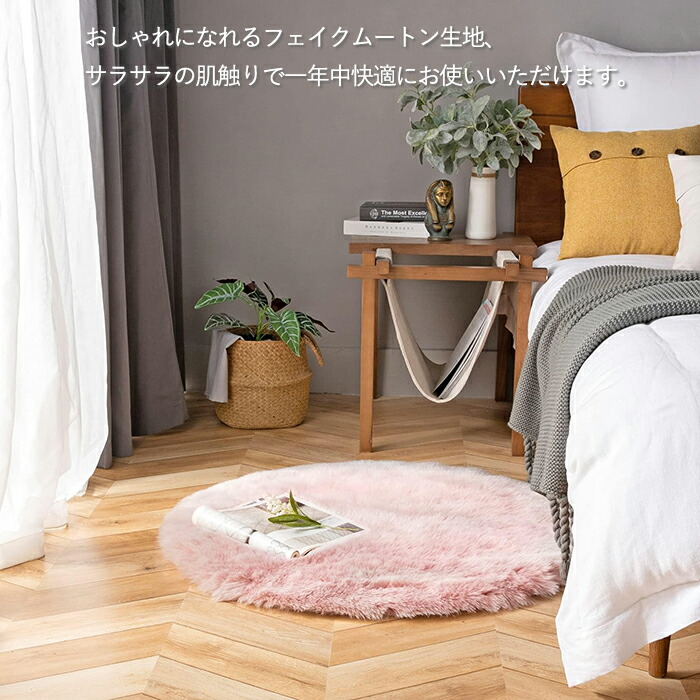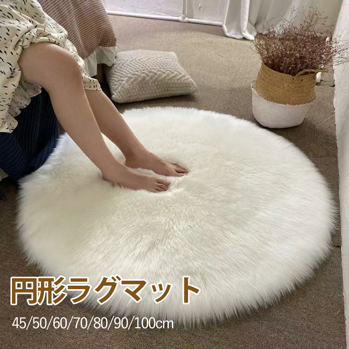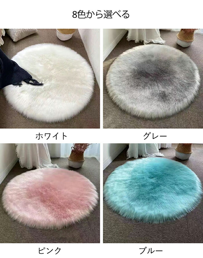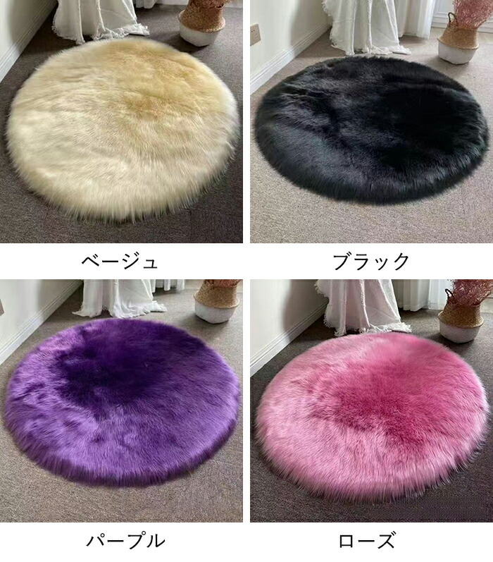 ラグマット 円形 ファーラグ フェイク ホワイト グレー ピンク ブルー ベージュ ブラック パープル ローズ 直径45cm 直径50cm 直径60cm 直径70cm 直径80cm 直径90cm 直径100cm