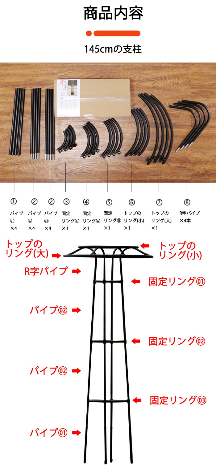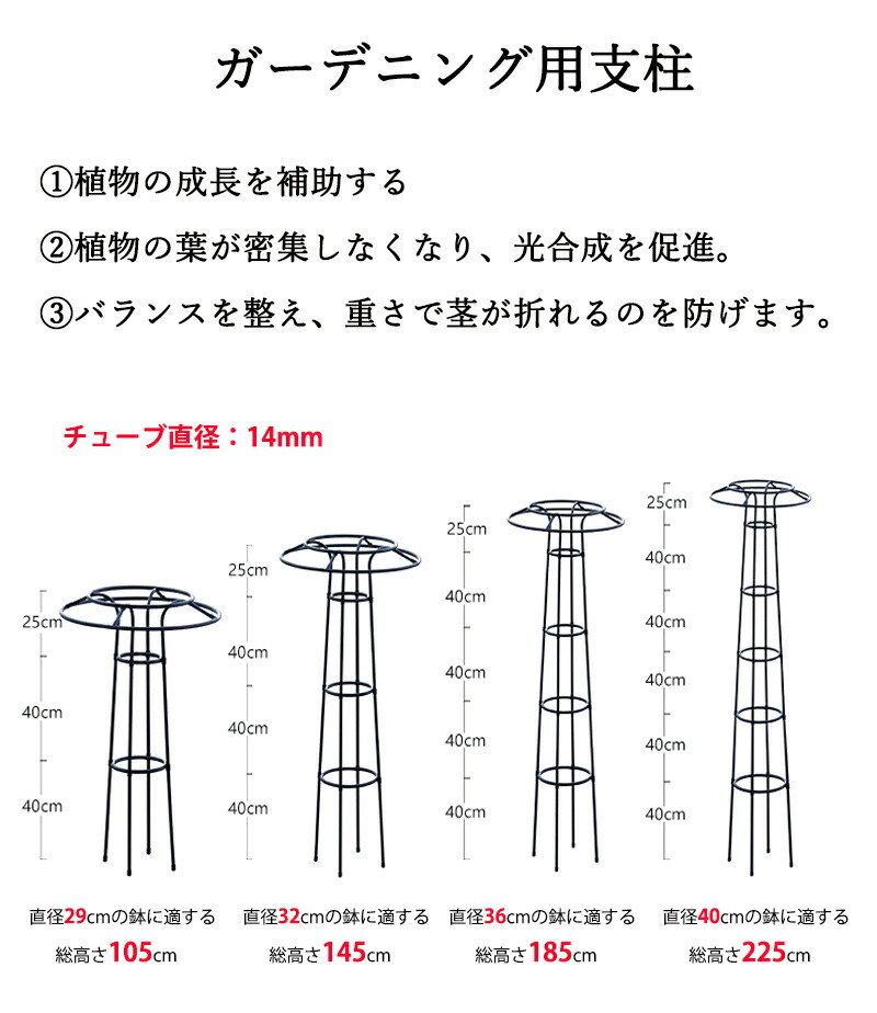 ガーデニング用支柱 オベリスク 支柱 ホワイト ブラック 105cm 145cm 185cm 225cm