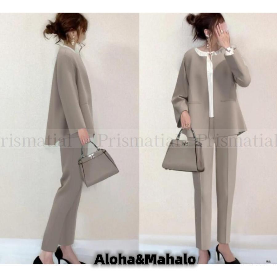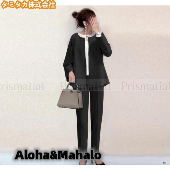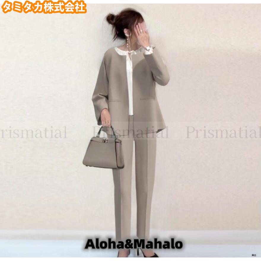 春 スーツ+パンツ レディース セット トップス ベアトップ チューブトップ 人気 ベージュ ブラック ネイビー S M L