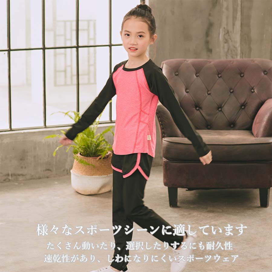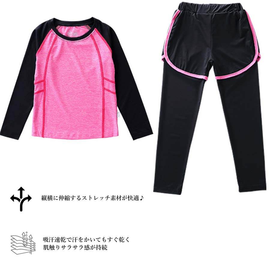 スポーツウェア キッズ 長袖 セットアップ ジュニア 2点セット スポーツパンツ半袖 吸汗速乾 春夏 生地 トレーニングウェア 子供服 女 シャツ