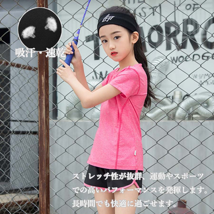 スポーツウェア キッズ tシャツ セッ キッズ 体操服 新登場! A.モモピンク B.ローズピンク C.グレー D.パープル 110 120 130 140 150 160 170
