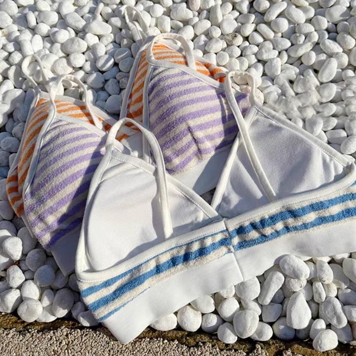 【ビタミンカラー全3色】パイル生地 スイムウェア ビーチウェア 水着 ビキニ 三角ビキニ 部屋着 ボーダー ショートパンツ 体型カバー ママ水着 プール 海 フェス セット水着 カジュアル
