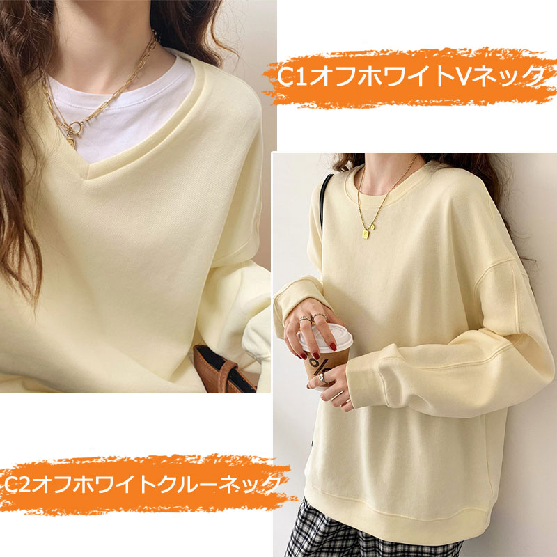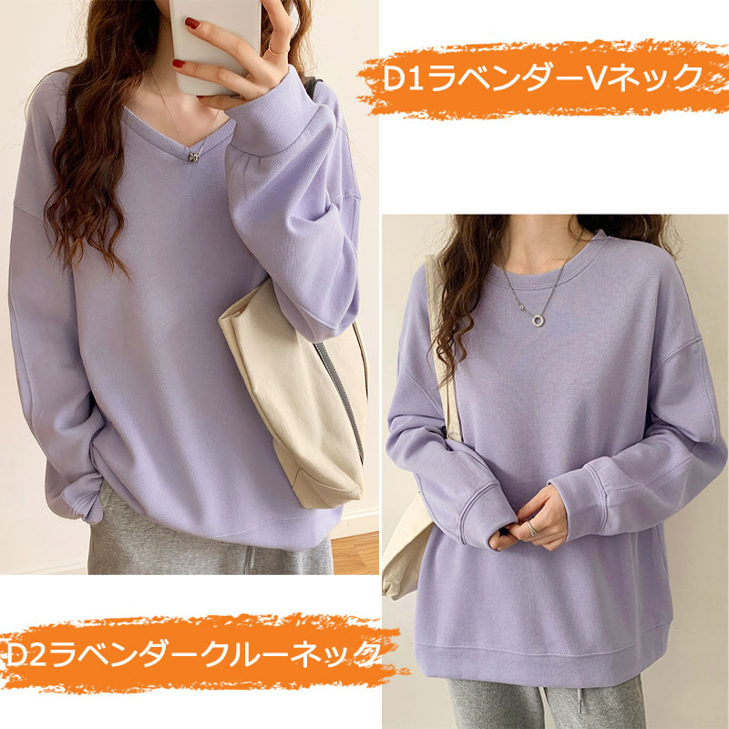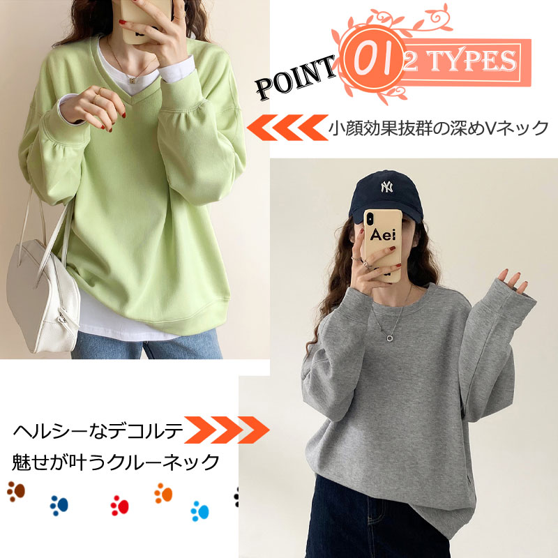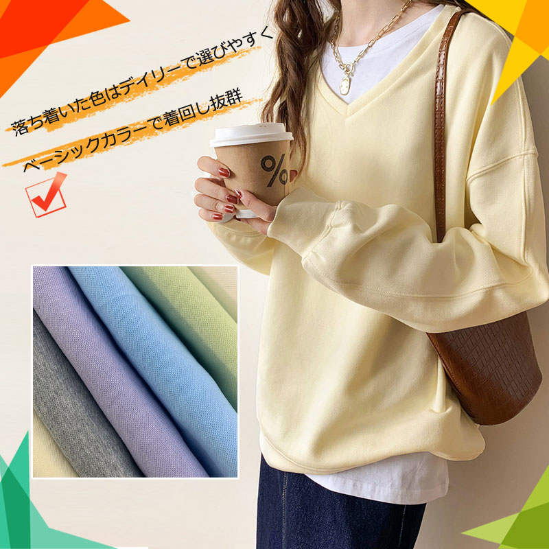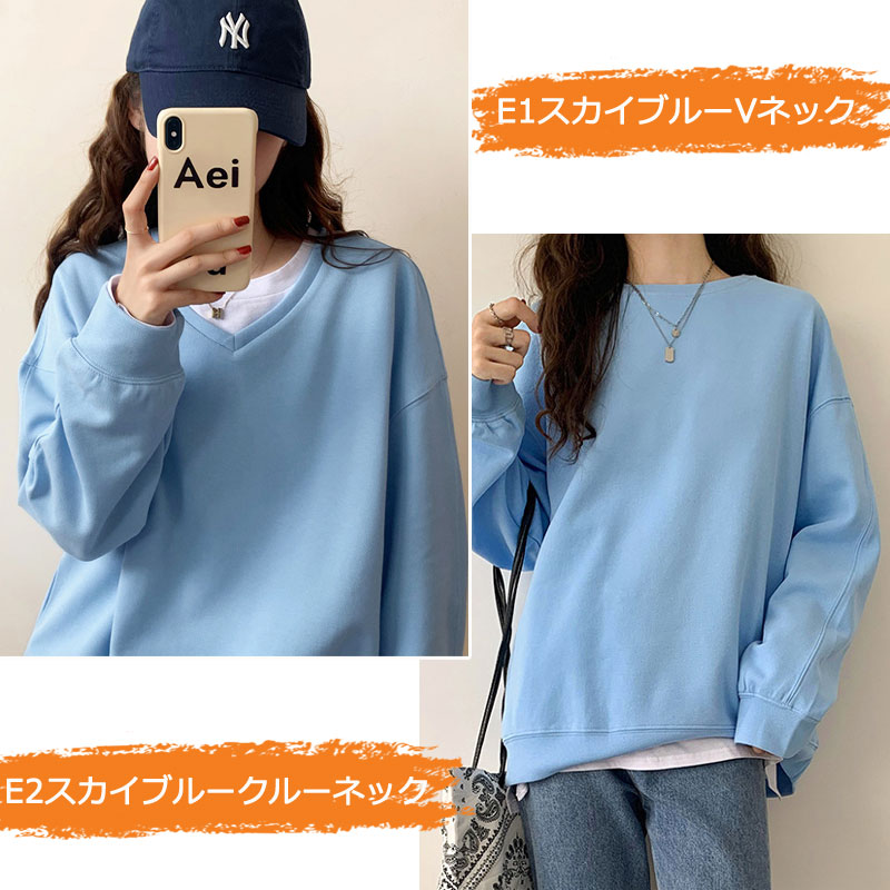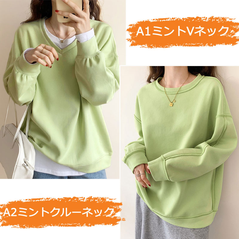 オーバーサイズ トレーナー レディース トップス スウェット トレーナー 人気 A1ミントVネック A2ミントクルーネック B1ホワイトVネック B2ホワイトクルーネック C1オフホワイトVネック C2オフホワイトクルーネック D1ラベンダーVネック D2ラベンダークルーネック E1スカイブルーVネック E2スカイブルークルーネック F1グレーVネック F2グレークルーネック S M L