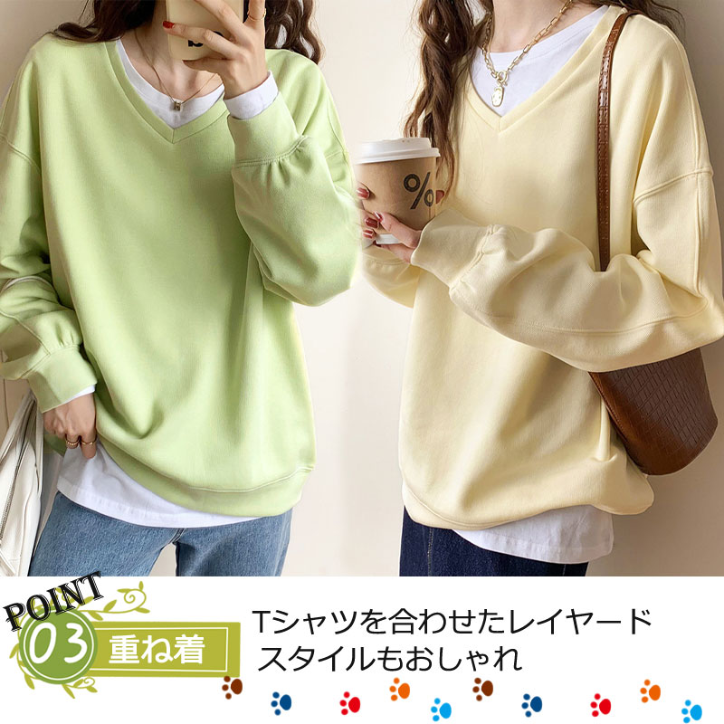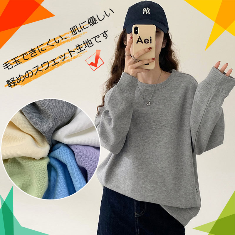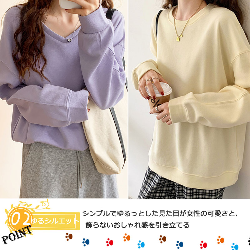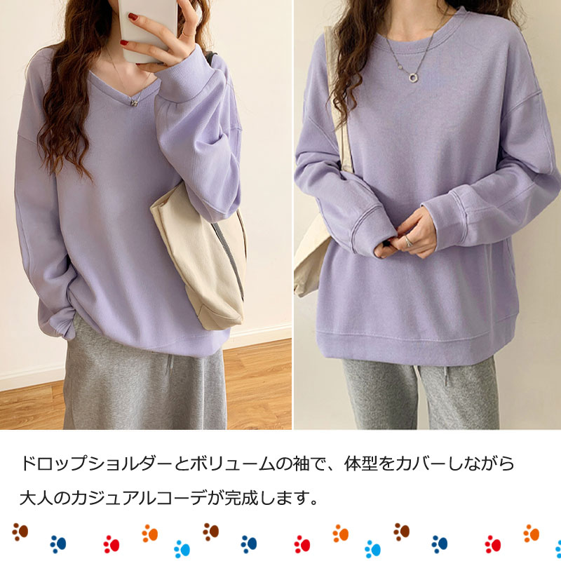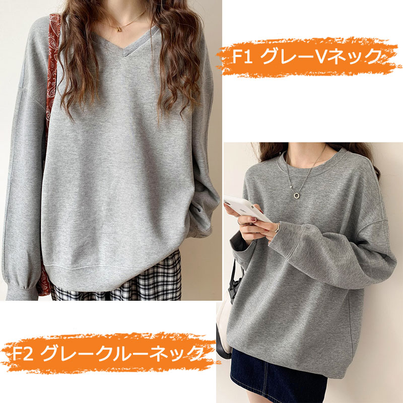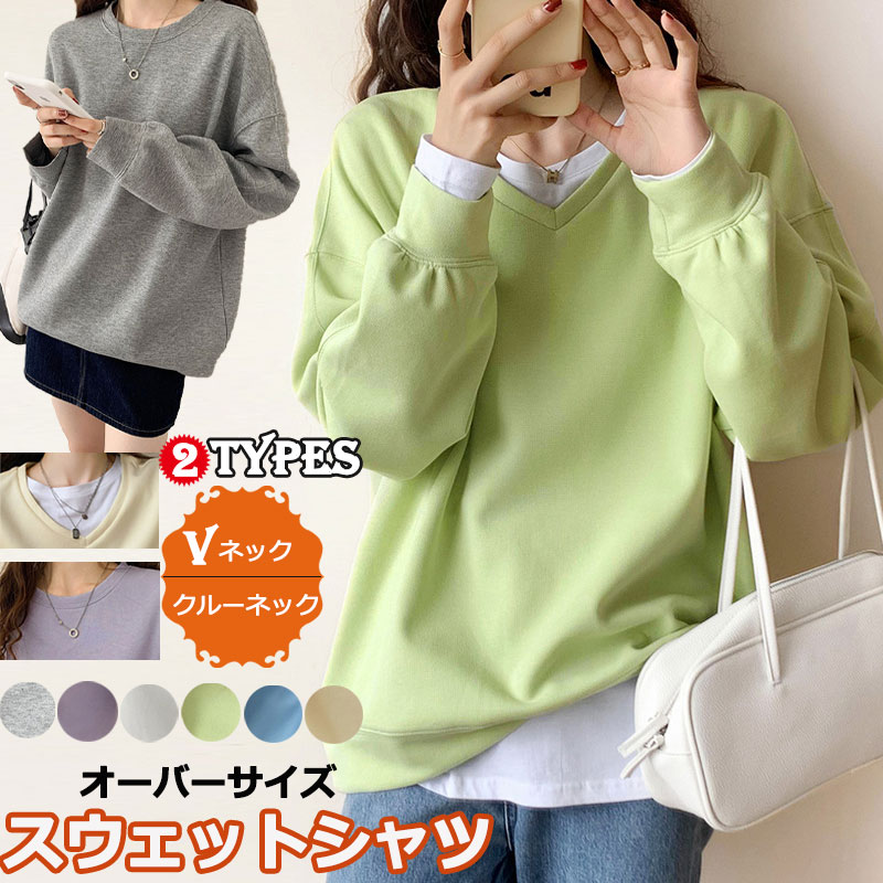 オーバーサイズ トレーナー レディース トップス スウェット トレーナー 人気 A1ミントVネック A2ミントクルーネック B1ホワイトVネック B2ホワイトクルーネック C1オフホワイトVネック C2オフホワイトクルーネック D1ラベンダーVネック D2ラベンダークルーネック E1スカイブルーVネック E2スカイブルークルーネック F1グレーVネック F2グレークルーネック S M L