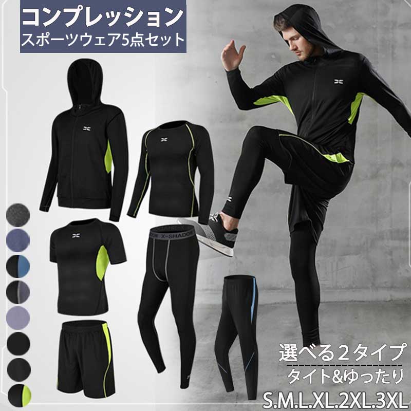 メンズスポーツウェア メンズ 5点セッ スポーツ アウトドア 人気 Sサイズ Mサイズ Lサイズ XLサイズ 2XLサイズ 3XLサイズ Aグリーン(タイト) Bネイビー(タイト) Cグレー(タイト) Dブラック(タイト) Eグレー(タイト) Fブルー(タイト+ゆったり) Gグレー(ゆったり) Hブラック(ゆったり)