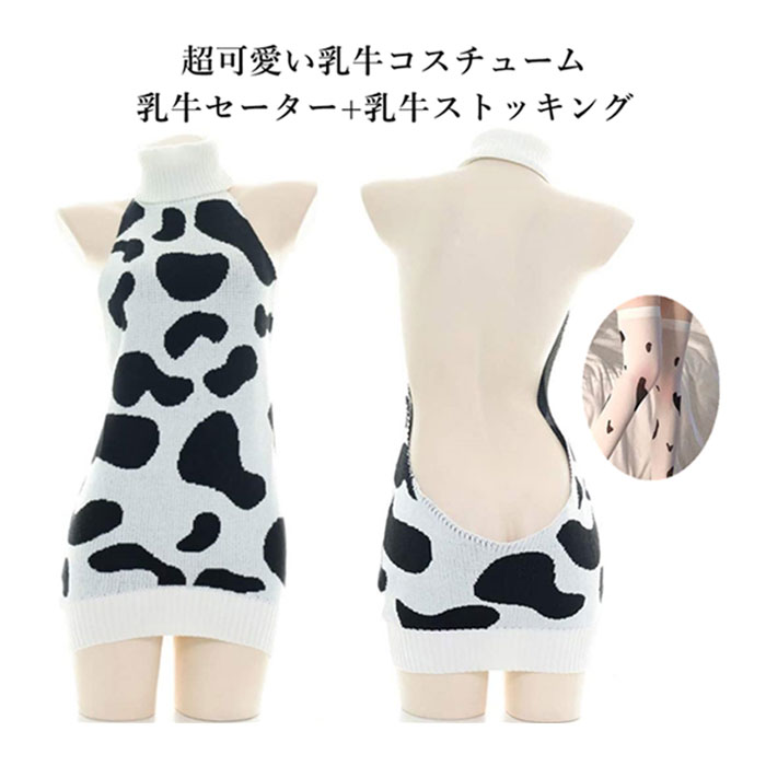 セクシーランジェリー ニット 乳牛 牛柄 ベビードール 超過激 コスプレコスプレ 動物柄 セーター コスチューム パーティー 仮装 ストッキング付き コスプレ衣装 可愛い 撮影用道具