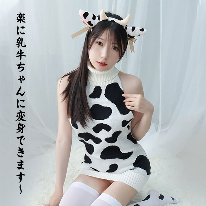 【乳牛風コスチューム】超可愛い乳牛コスプレ衣装が新登場!このセットで楽に乳牛ちゃんに変身できます~!乳牛柄のストッキングも付いていて、雰囲気を一層引き立てます。
