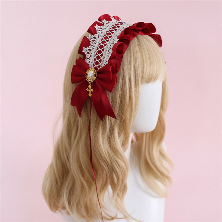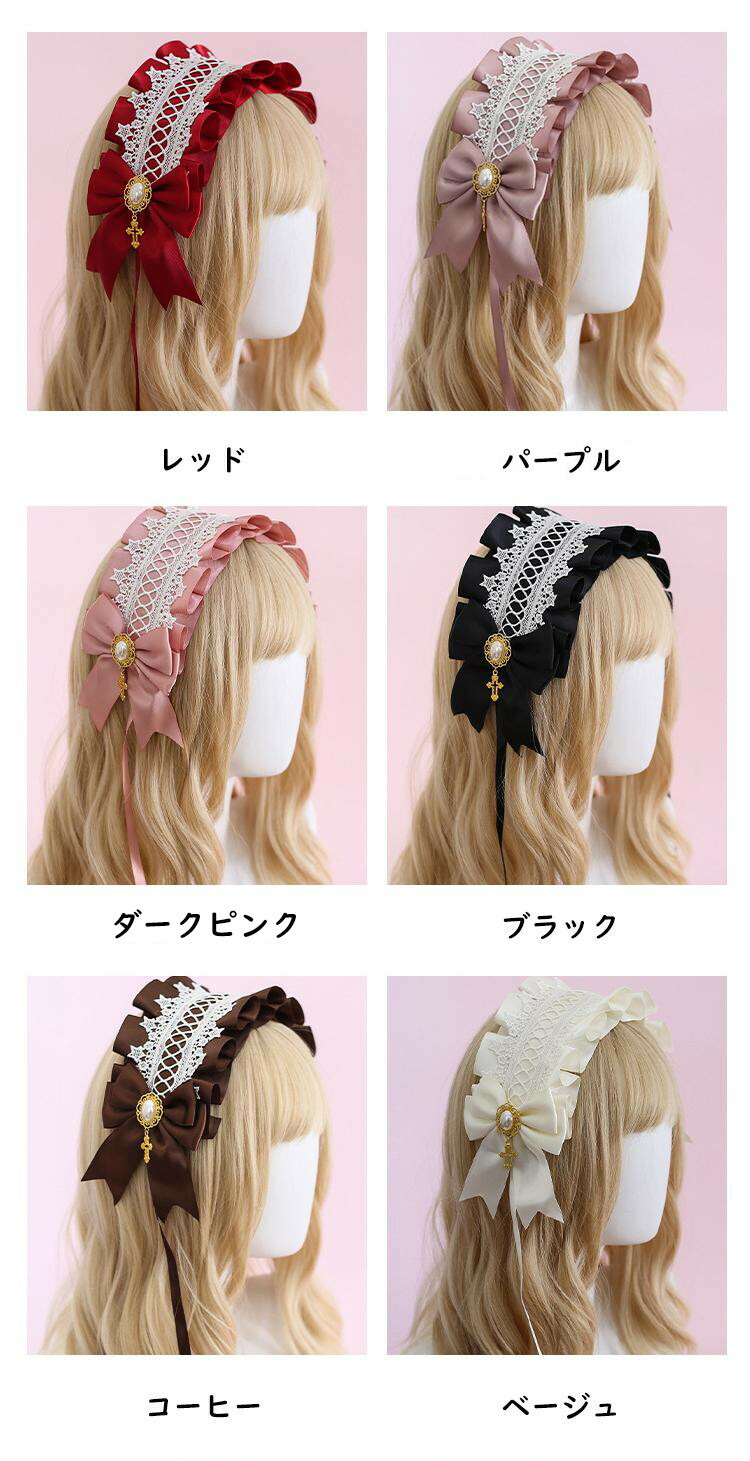 ロリータ ヘッドドレス レディース ゴ ジュエリー アクセサリー 続々登場 レッド パープル ダークピンク ブラック コーヒー ベージュ ライトブルー ライトピンク グレー ブルー グリーン ネイビー ワイン