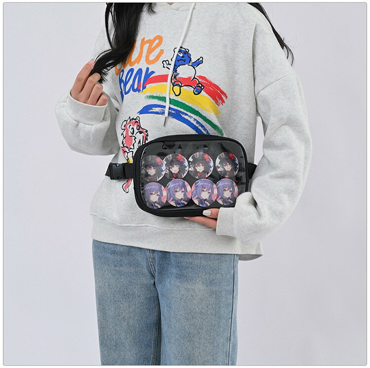 痛バッグ A4 痛バ リュック ボディーバッグ ウエストポーチ カバン 鞄 3WAY レディース メンズ 男女兼用 女子 男子 痛リュック 缶バッチ 小さいバッグ 学生 ビニールバッグ ヲタバ 通学