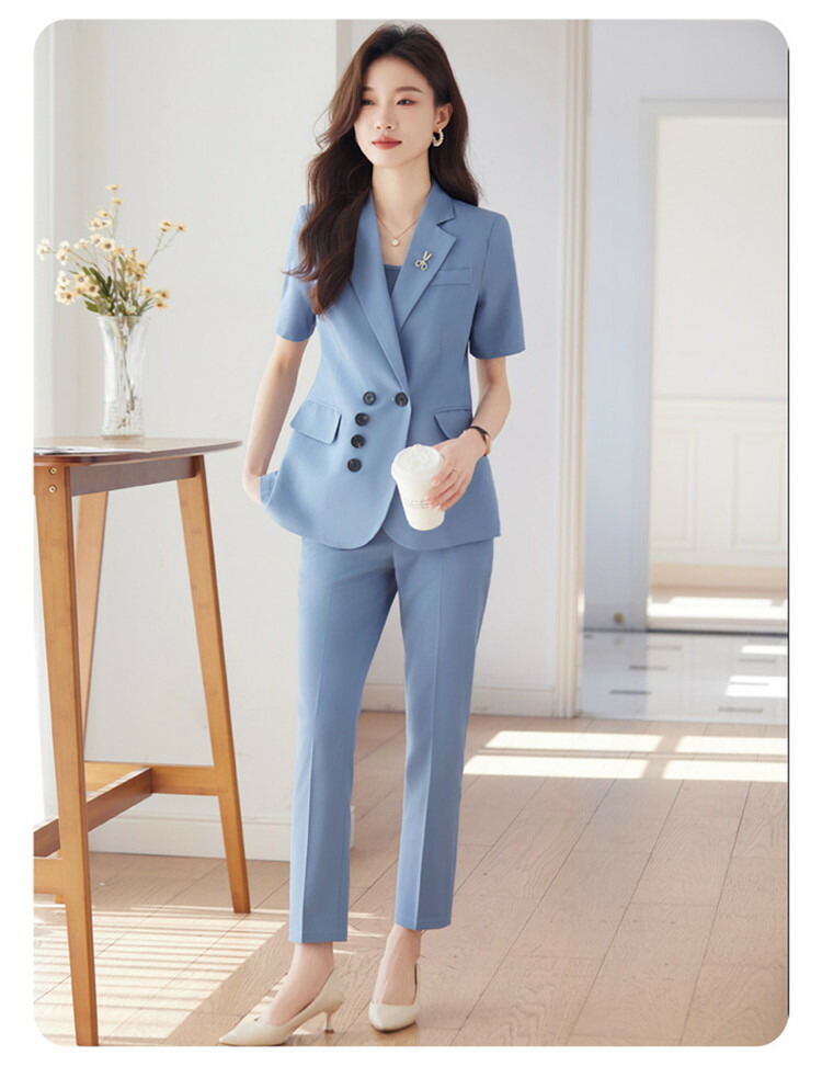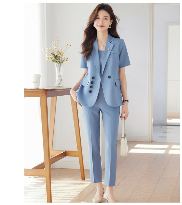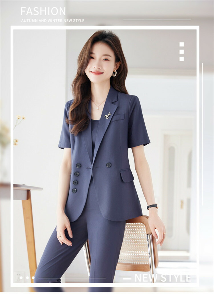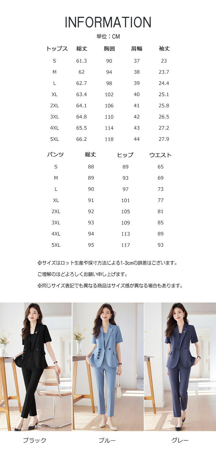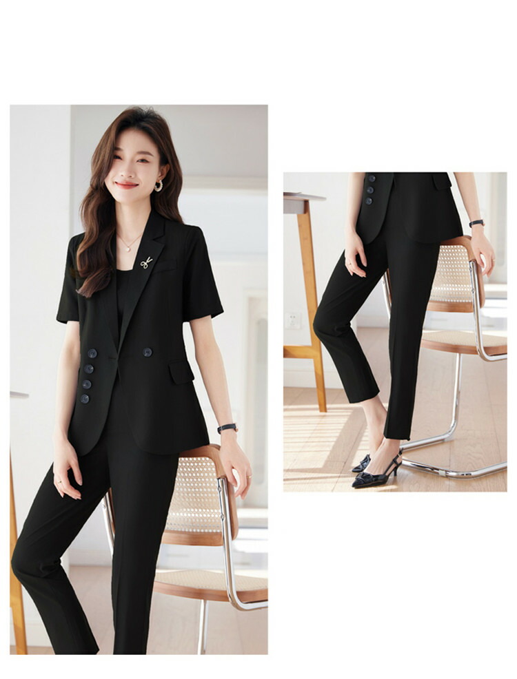 パンツスーツ レディース 半袖 ジャケ レディースファッション 通販 S M L XL 2XL 3XL 4XL 5XL ブルージャケット グレージャケット ブラックジャケット ブルーセット グレーセット ブラックセット