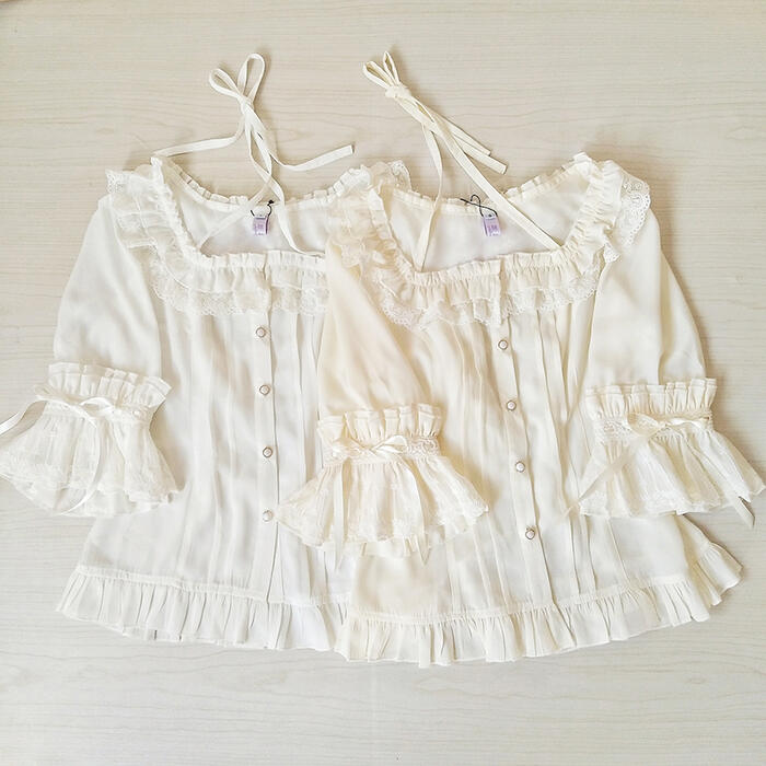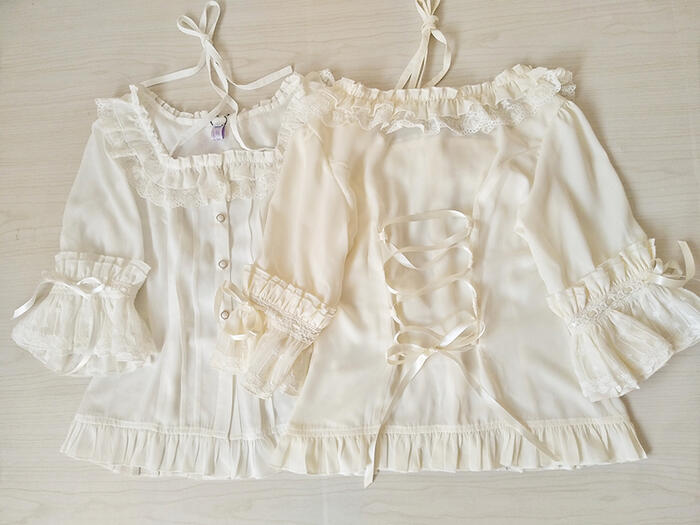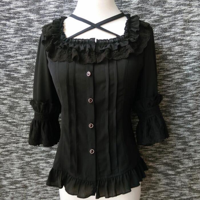 ブラウス ロリータ 春夏 七分袖 姫袖 ホビー 続々登場 XS S M L XL XXL ホワイト ブラック アイボリー