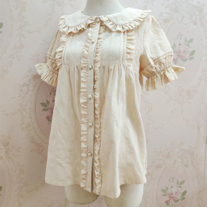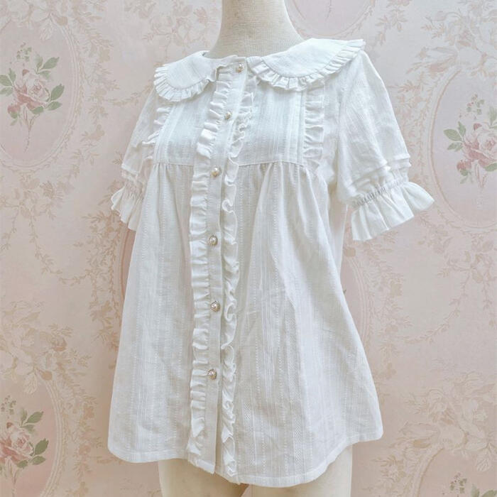 ロリータ ブラウス 半袖 夏 loli コスプレ 変装 仮装 ブラウス 新登場! XS S M L XL 2XL 3XL ホワイト アプリコット ピンク