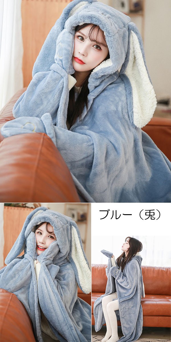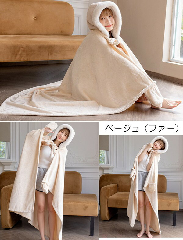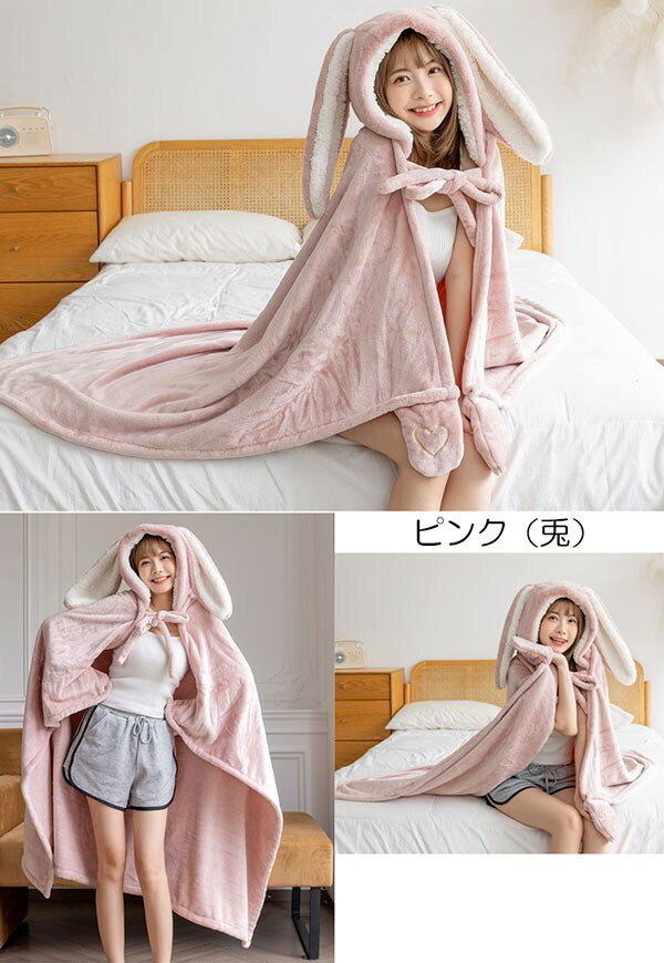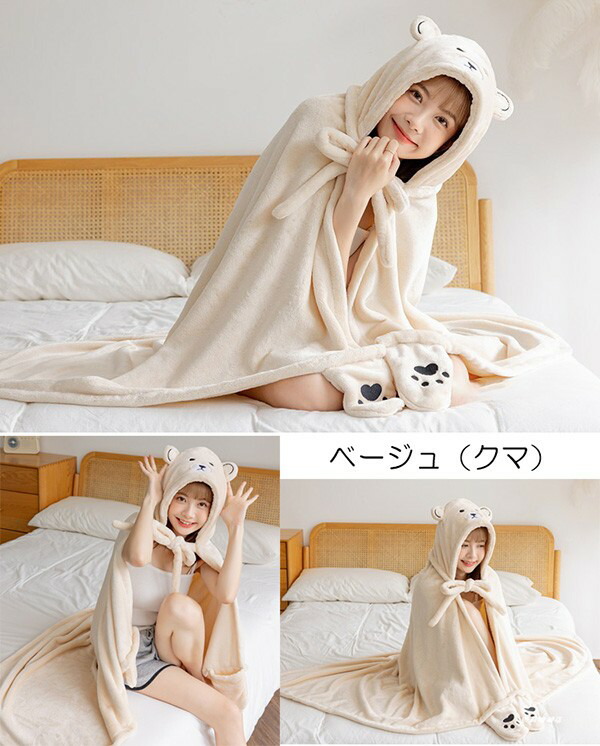 ブランケット マント 着る毛布 モコモ 寝具 毛布 ブランケット 豊富な品揃え ブラック(猫) ピンク(兎) ブルー(兎) 薄いパープル(兎) ベージュ(兎) ベージュ(ファー) ブラウン(クマ) ベージュ(クマ)