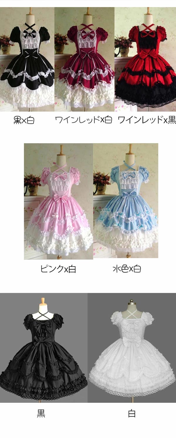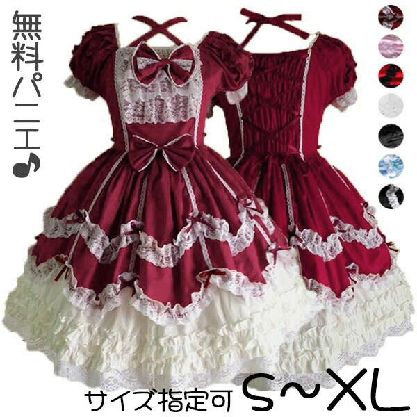 パニエをプレゼント♪ ゴスロリ ワンピ コスプレ 変装 仮装 ワンピース 人気 S M L XL サイズ指定 黒×白 ワインレッド×白 水色×白 ワインレッド×黒 ピンク×白 黒 白