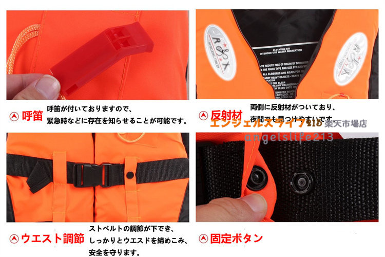 ライフジャケット ベスト型 笛付き シ スポーツ アウトドア 豊富な品揃え オレンジ レッド イエロー ブルー S M L XL XXL XXXL