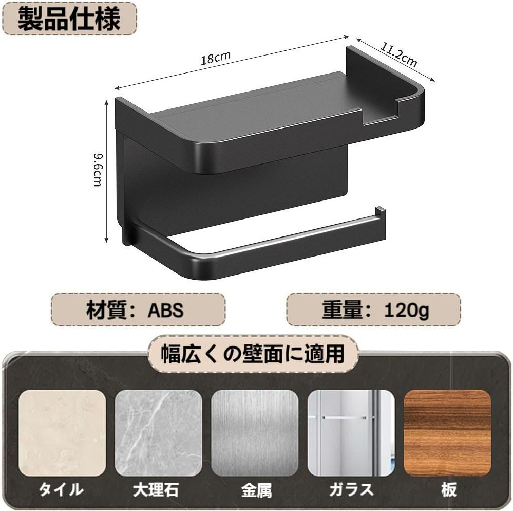 トイレットペーパーホルダー 穴あけ不要 トイレ用品 トイレットペーパーホルダー 通販 ブラック グレー ホワイト