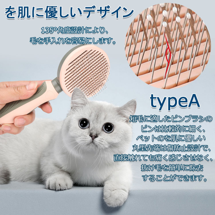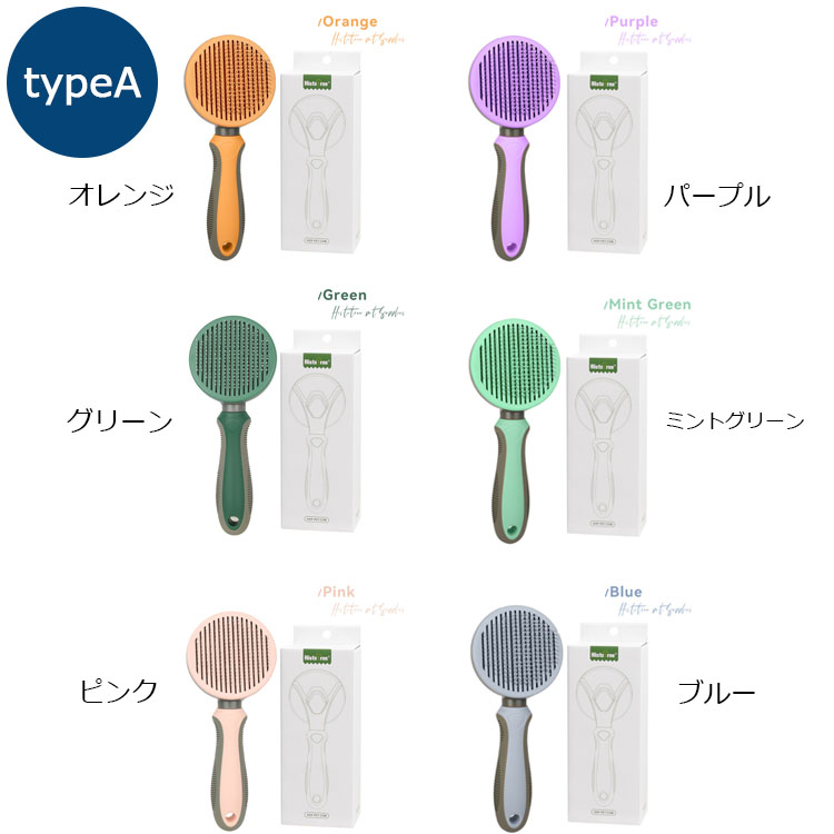ペットブラシ 猫ブラシ 犬ブラシ ブラ Type A Type B ピンク グリーン ブルー オレンジ ミントグリーン パープル