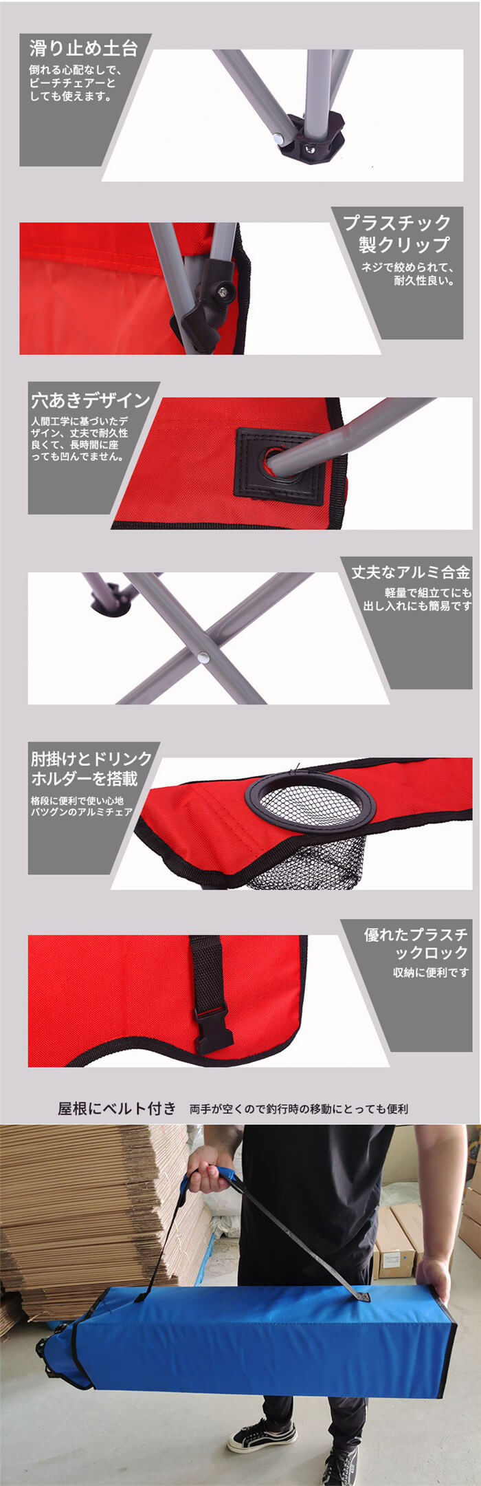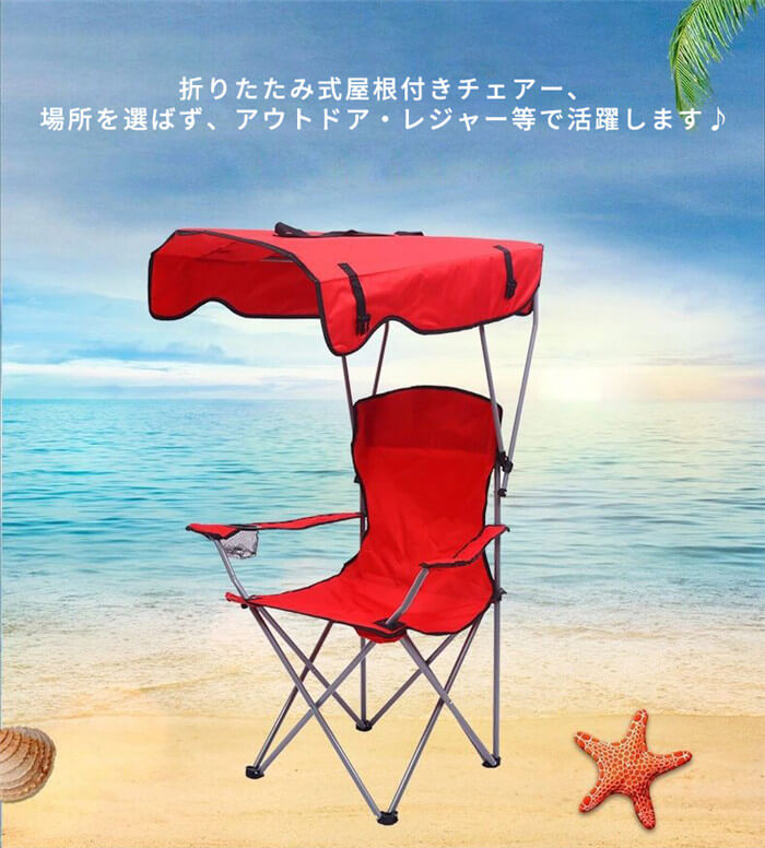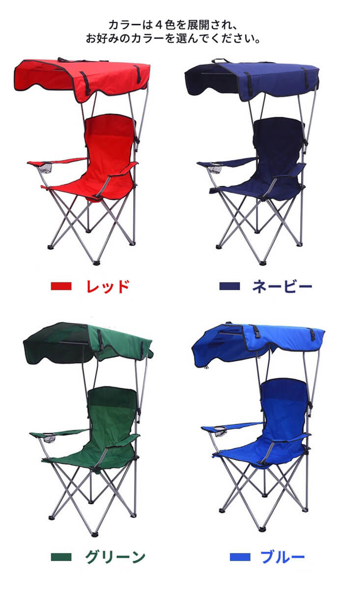 折りたたみ椅子 日よけ付 ビーチチェア スポーツ アウトドア 早い者勝ち レッド ブルー グリーン ネイビー
