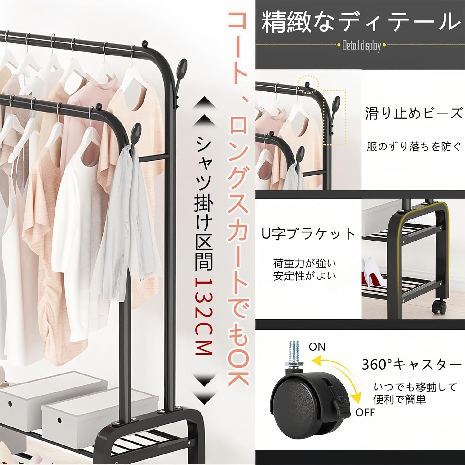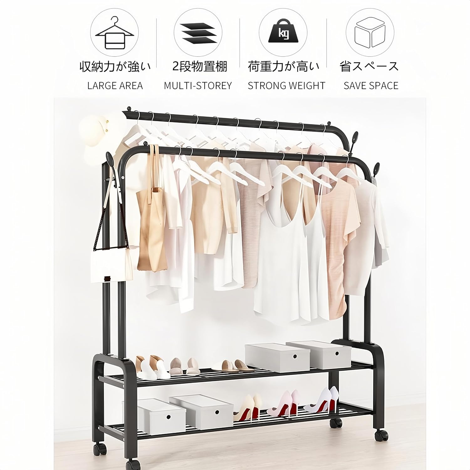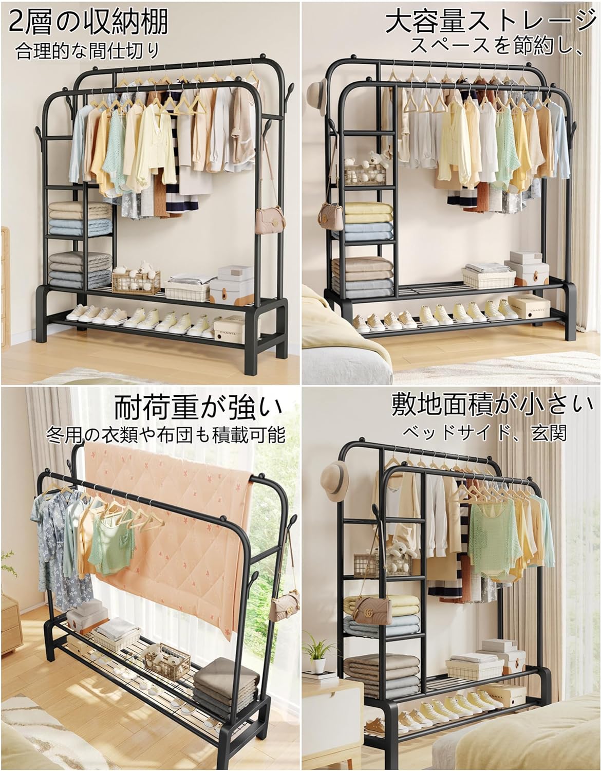 ハンガーラック 頑丈 パイプハンガーラ ブラック ホワイト 150cm両層-シングルロッド 150cm両層-ダブルロッド