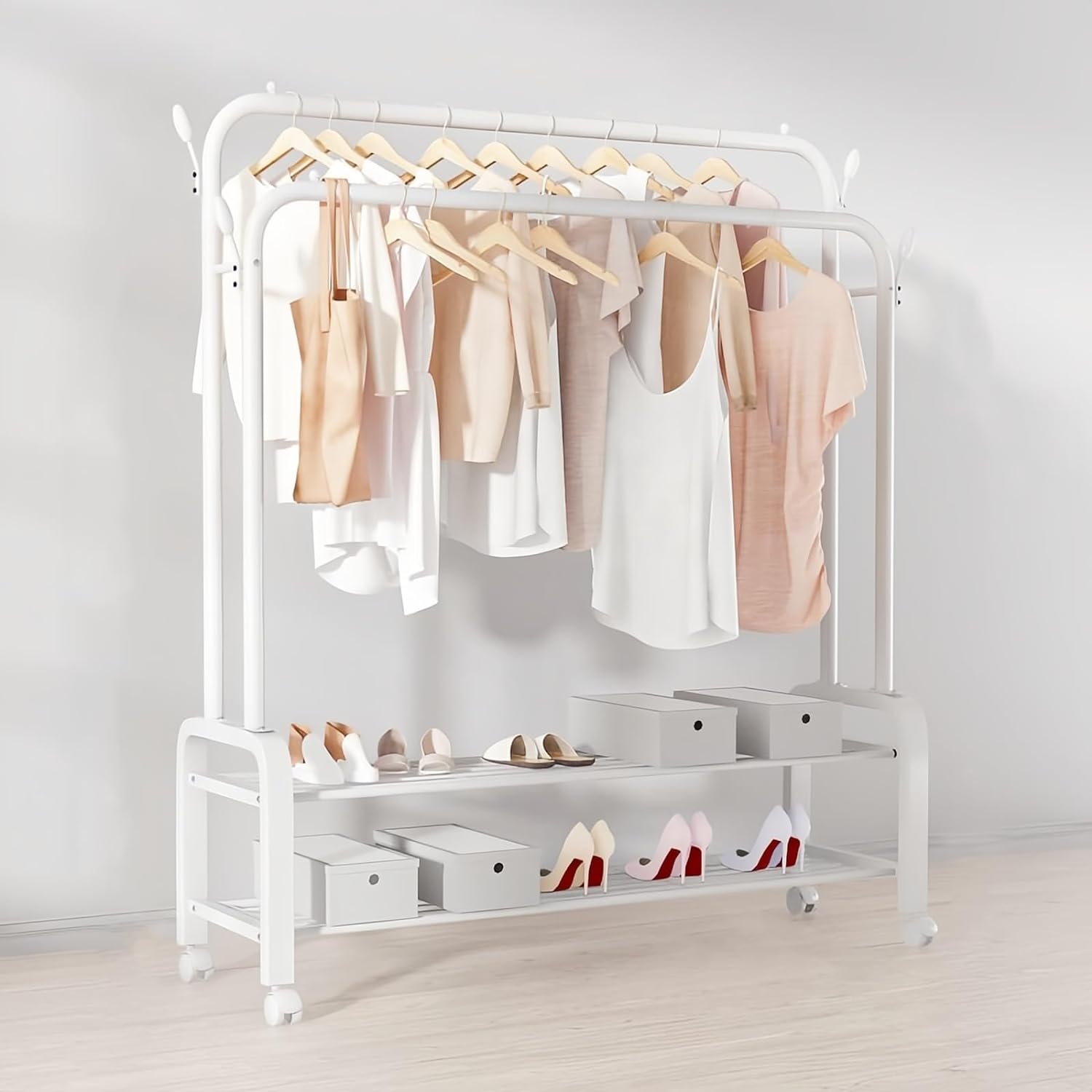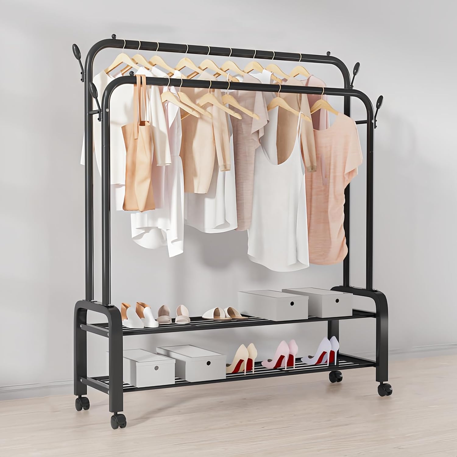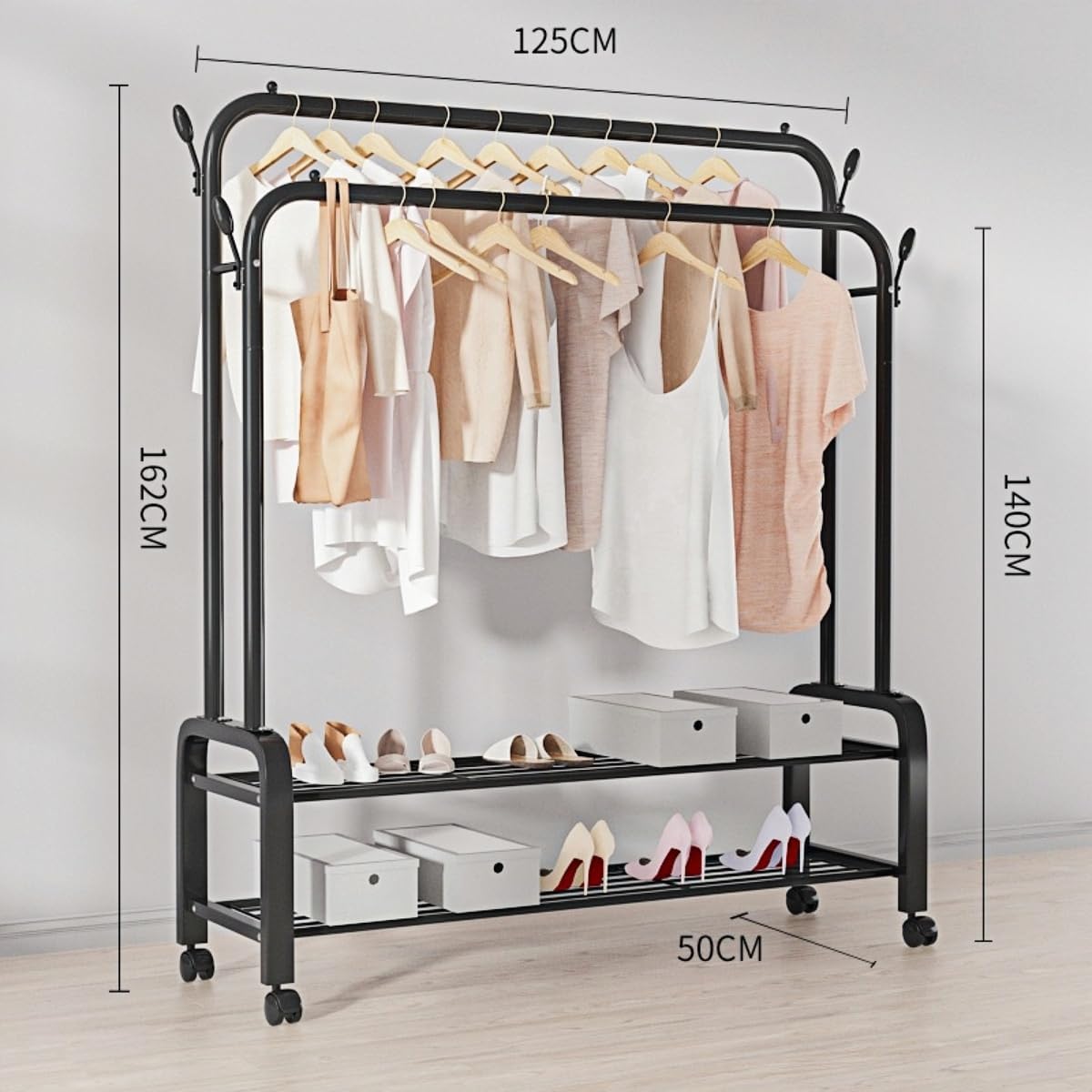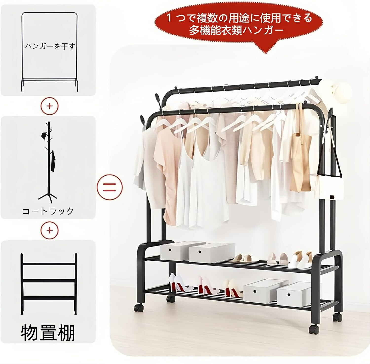 ハンガーラック 頑丈 パイプハンガーラ ブラック ホワイト 150cm両層-シングルロッド 150cm両層-ダブルロッド