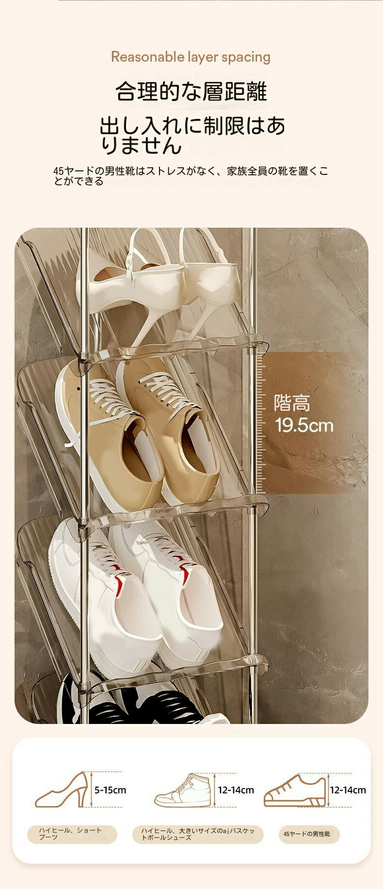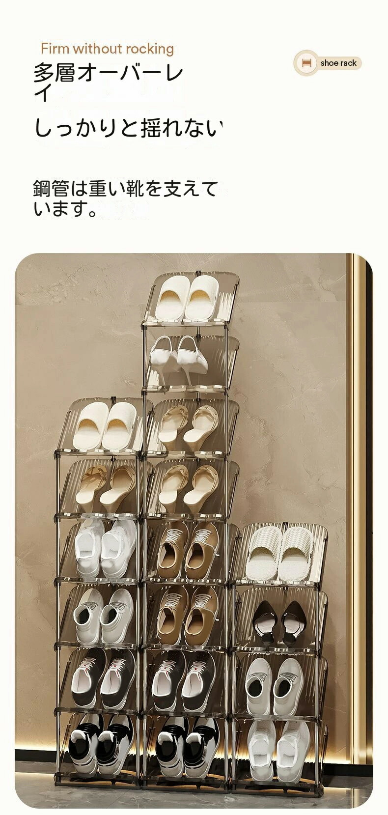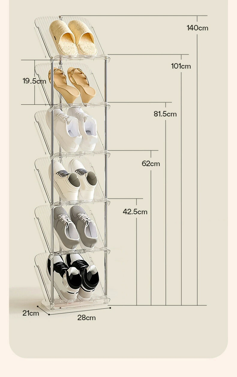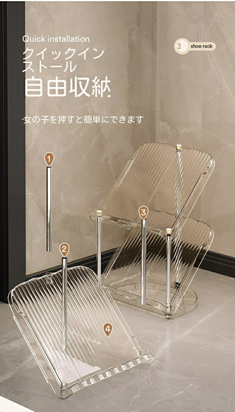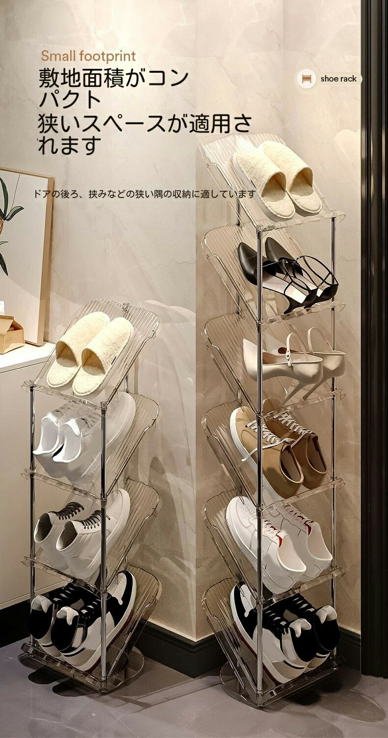 シューズラック 省スペース 狭い玄関 透明ホワイト 透明グレー 2階 3階 4階 5階 6階 7階 8階