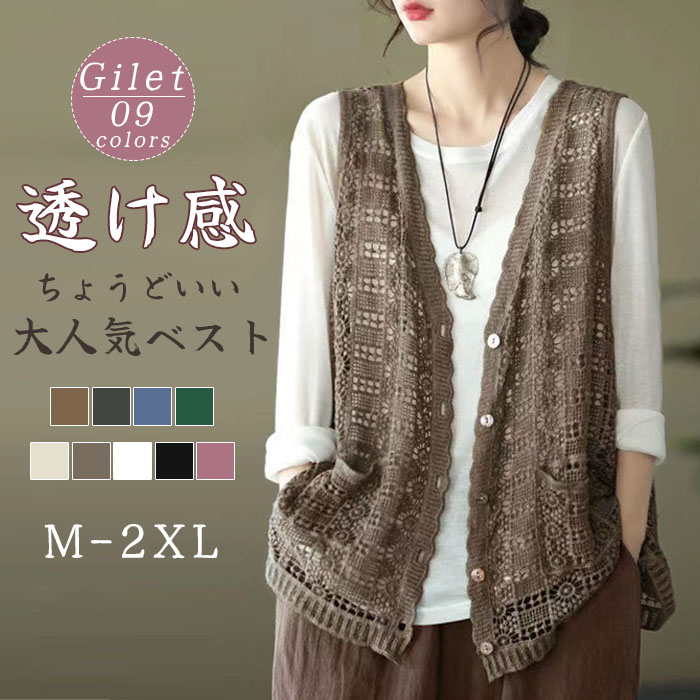 ジレ レディース 50代 ノーカラー レディースファッション 早い者勝ち M L XL 2XL ホワイト オフホワイト ベージュ ブラウン ブラック ブルー グレー グリーン ピンク