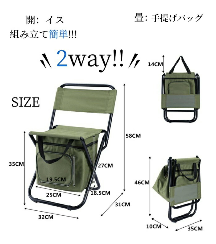 2way 手提げバッグ チェア 椅子 アウトドア イス テーブル レジャーシート イス 豊富 グリーン ロイヤルブルー 迷彩