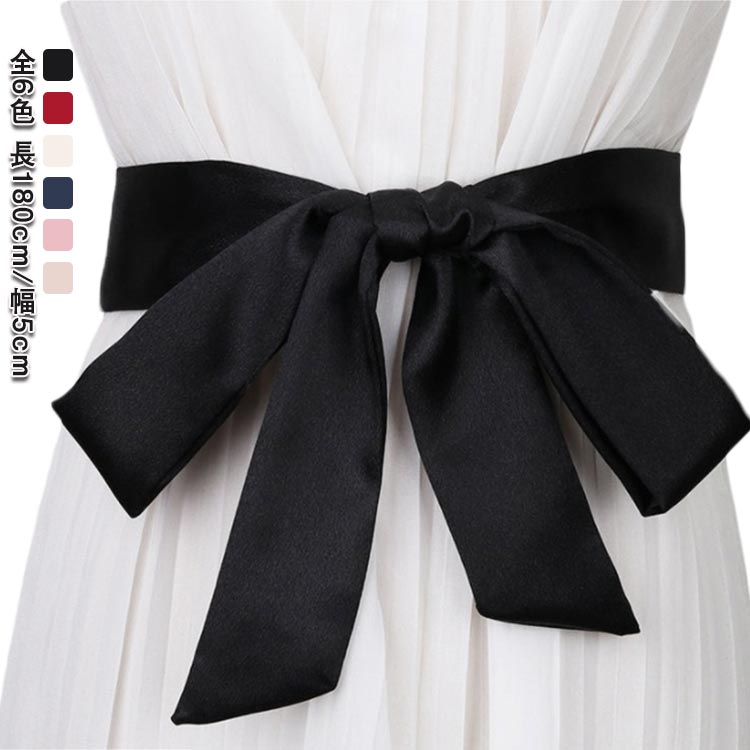 全6色 サテンタッチ サッシュリボン バッグ 小物 ブランド雑貨 続々入荷中 ベージュ ブラック ピンク ネイビー ホワイト レット