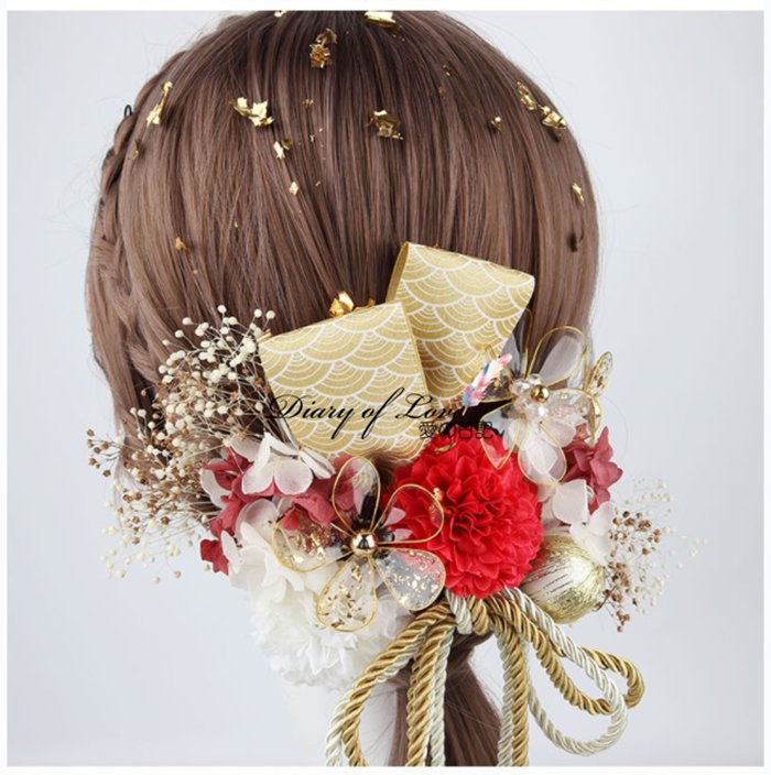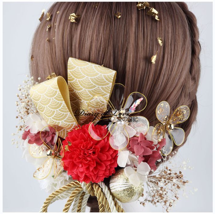 成人式 髪飾り 振袖 和装 ダリア 結 和服 和装小物 髪飾り 通販 ゴールド レッド