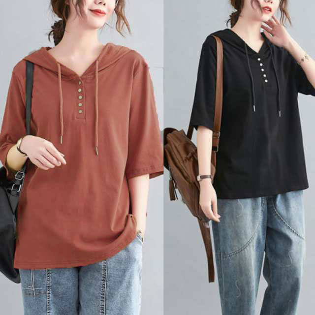 フード付きtシャツ レディース パーカ トップス パーカー 早い者勝ち L XL XXL ブラック レッド