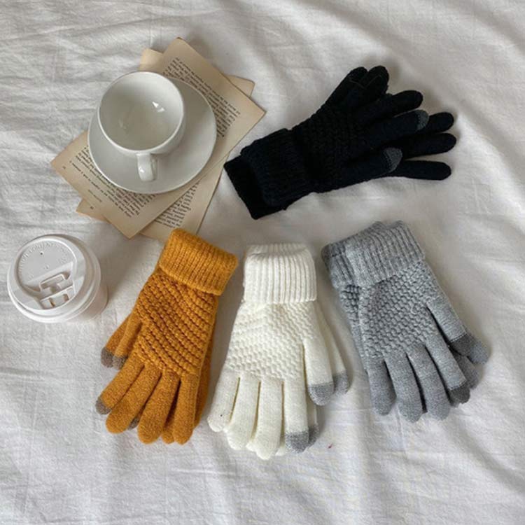 レディース ニット タッチパネル スマ 手袋 アームウォーマー レディース手袋 通販 グレー ブラック ホワイト イエロー