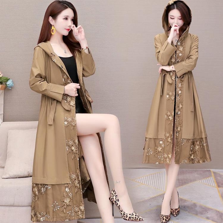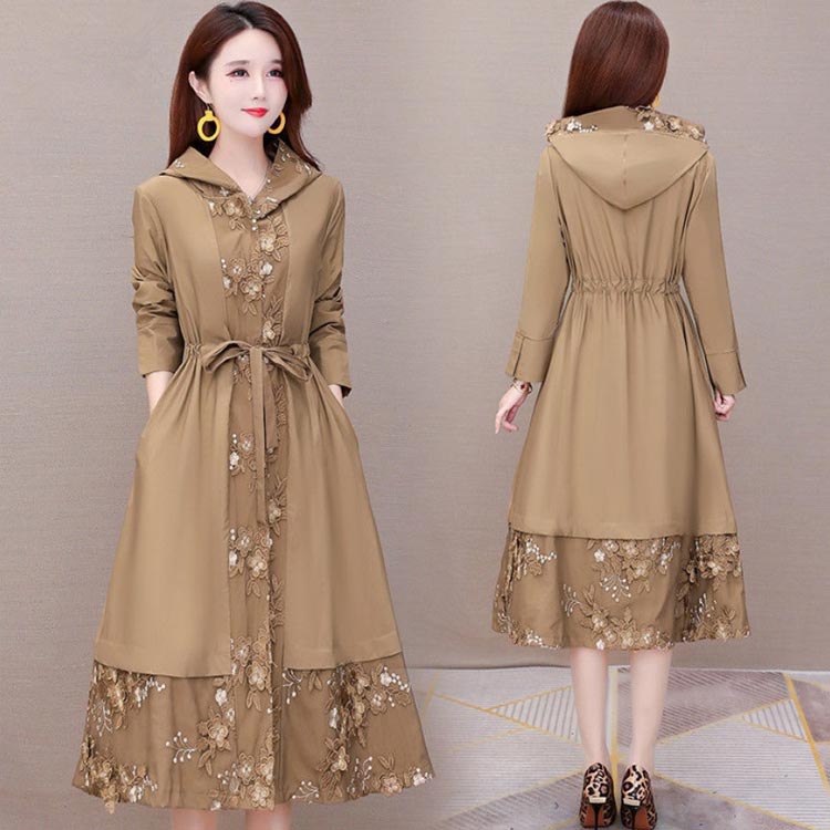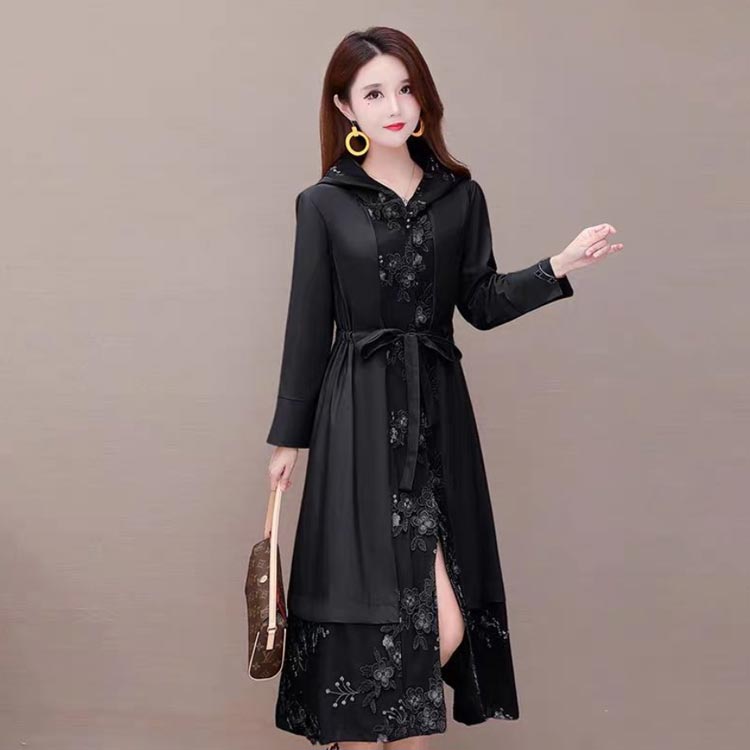 花柄刺繍ドッキングワンピーストレンチコ コート ジャケット 豊富 ブラウン ブラック L XL 2XL 3XL 4XL 5XL