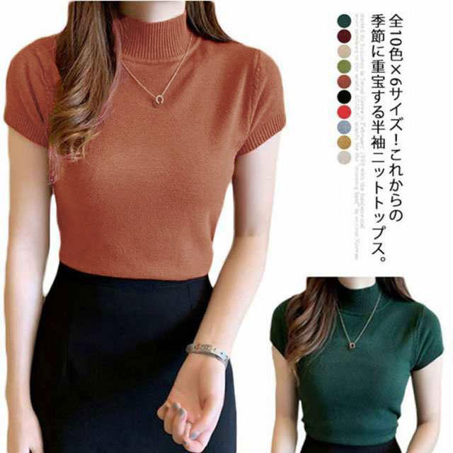 全10色×6サイズ 半袖ニットトップス レディースファッション 特集 ディープグリーン ホワイト ブラック モカ グリーン パープル