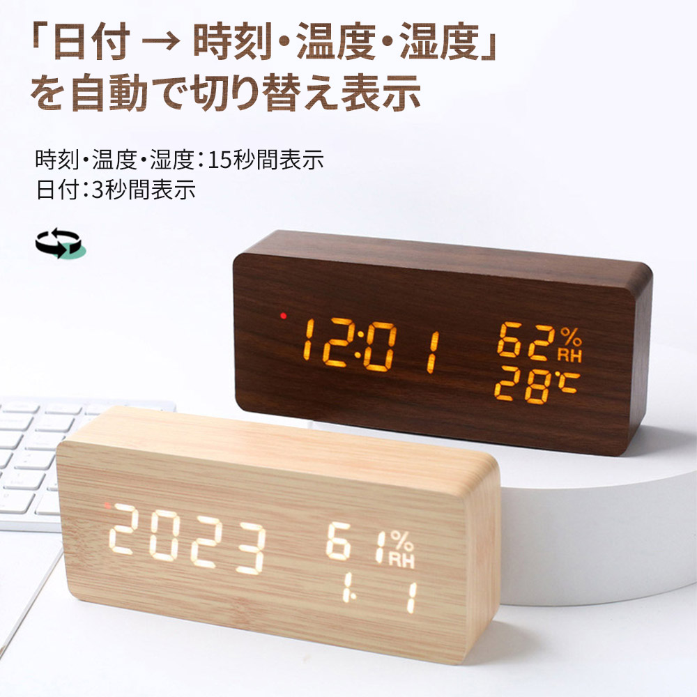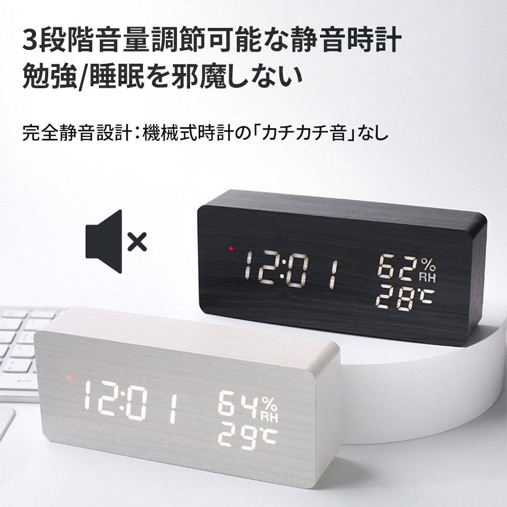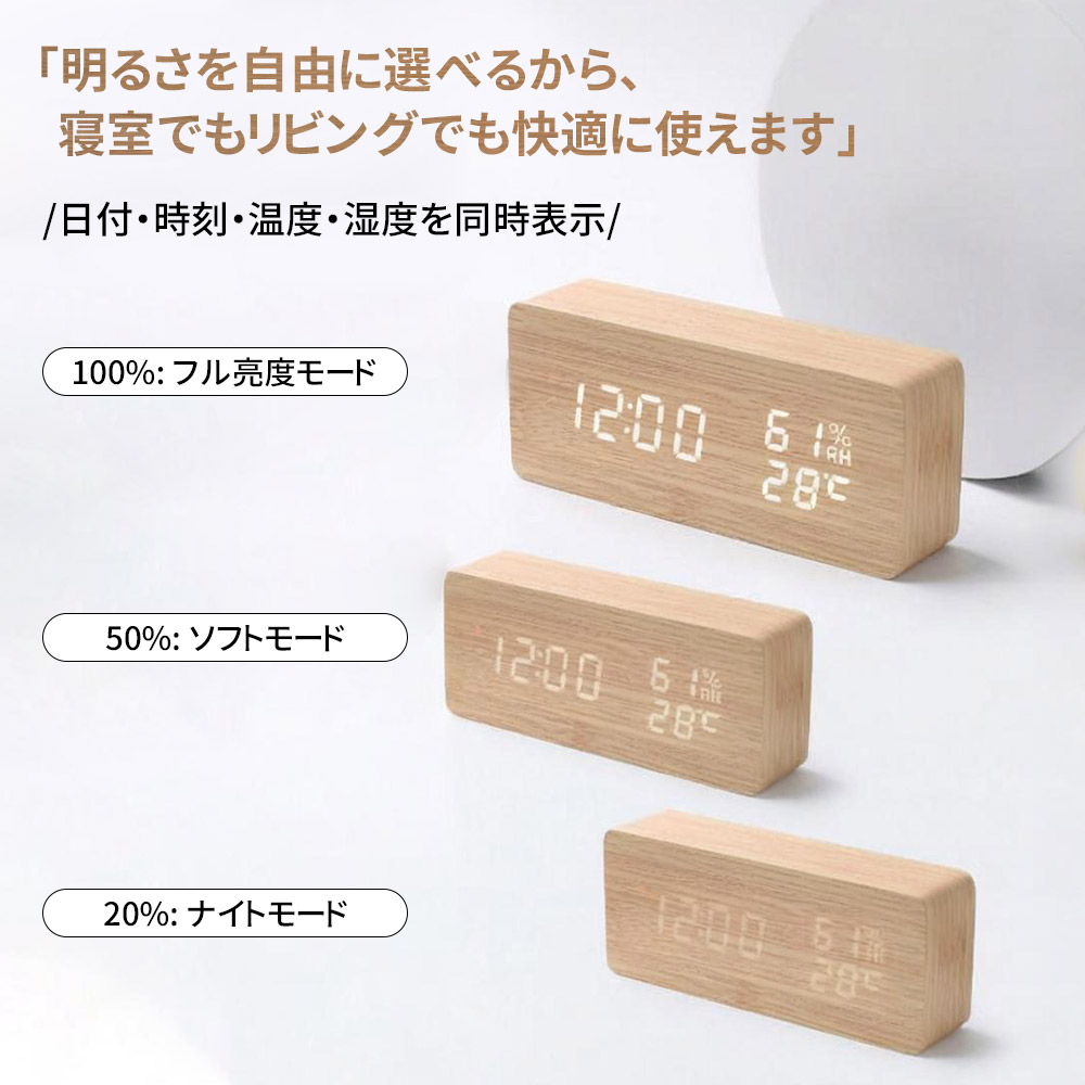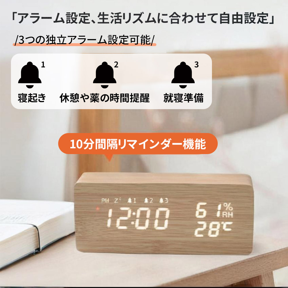 置時計 目覚まし時計 デジタル時計 木 ホワイト ナチュラル ブラウン ブラック 三角-ホワイト 三角-ナチュラル 三角-ブラウン 三角-ブラック