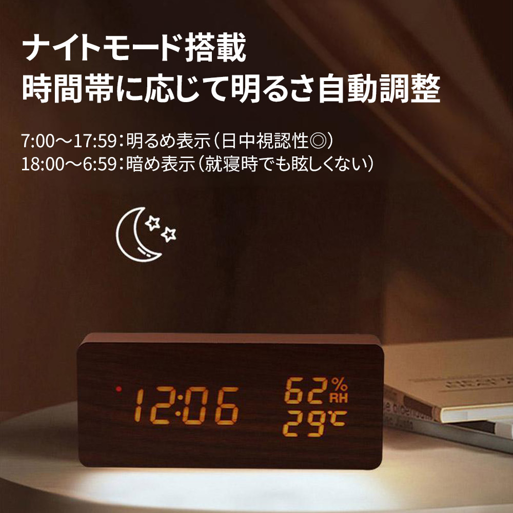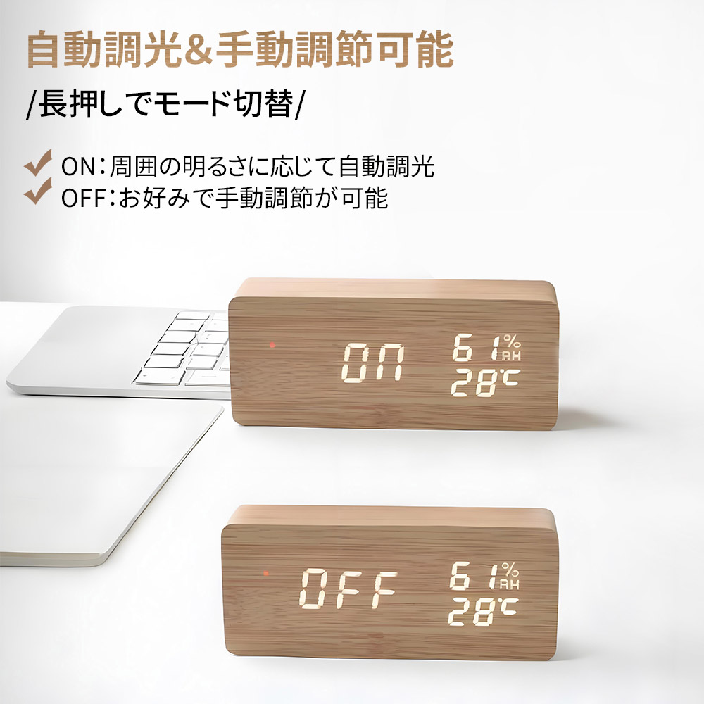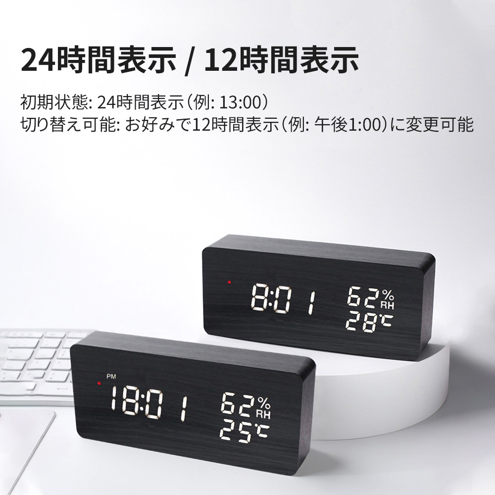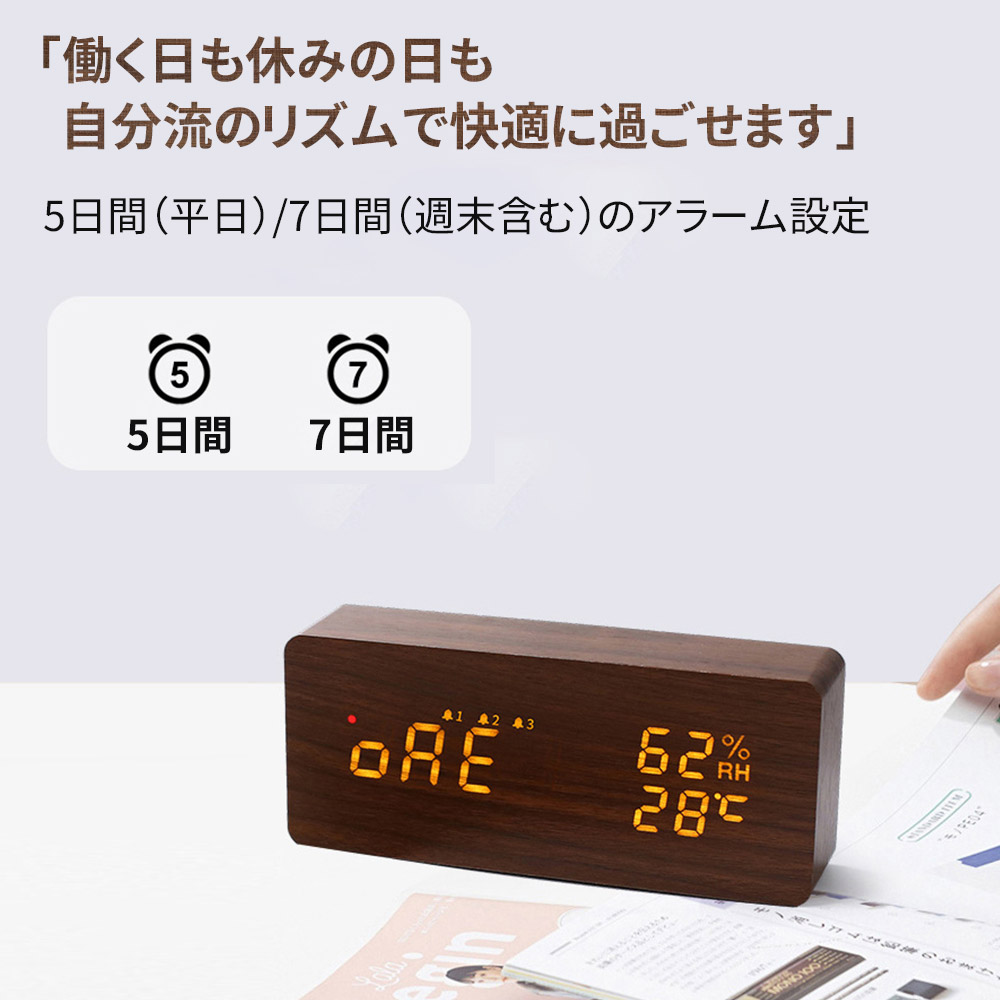 置時計 目覚まし時計 デジタル時計 木 ホワイト ナチュラル ブラウン ブラック 三角-ホワイト 三角-ナチュラル 三角-ブラウン 三角-ブラック