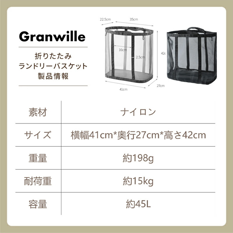 折りたたみ ランドリーバッグ ランドリ グレー ブラック