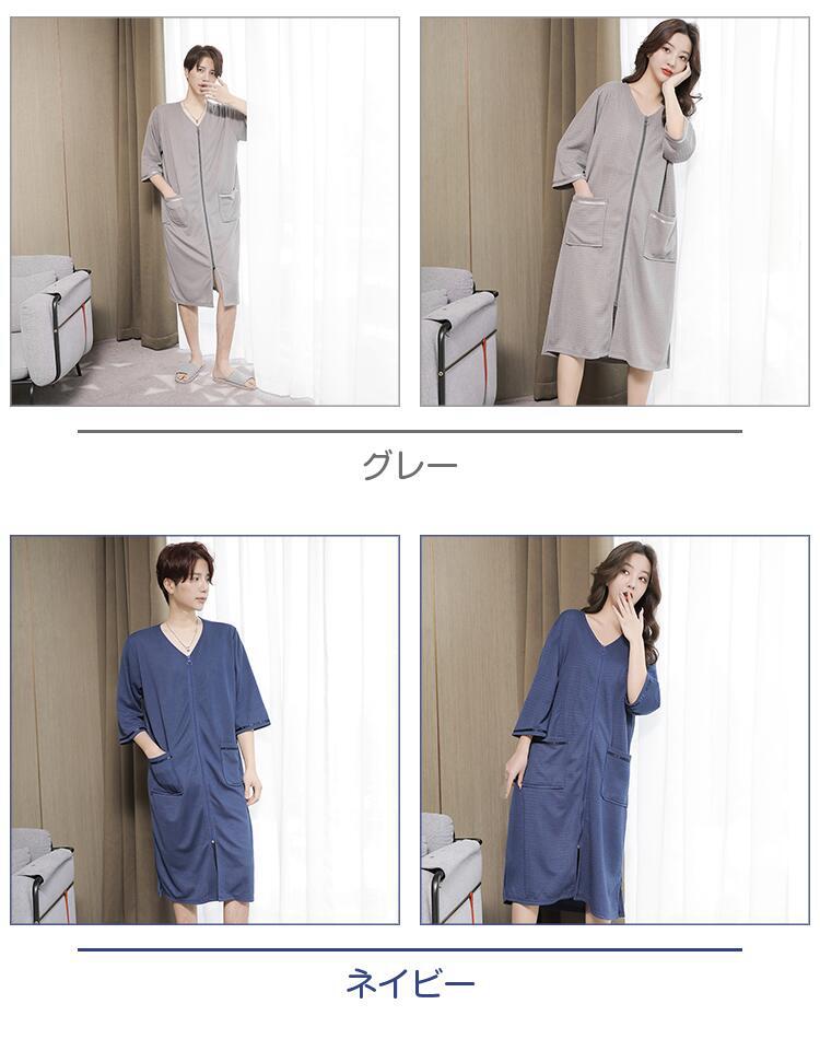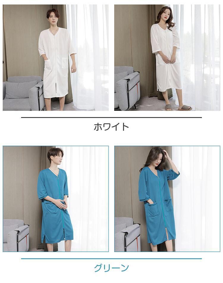 パジャマ バスローブ レディース メン インナー 下着 ナイトウエア 新登場! ネイビー グレー ホワイト グリーン M 2L(XL) 4L(XXXL)
