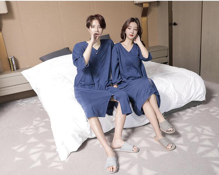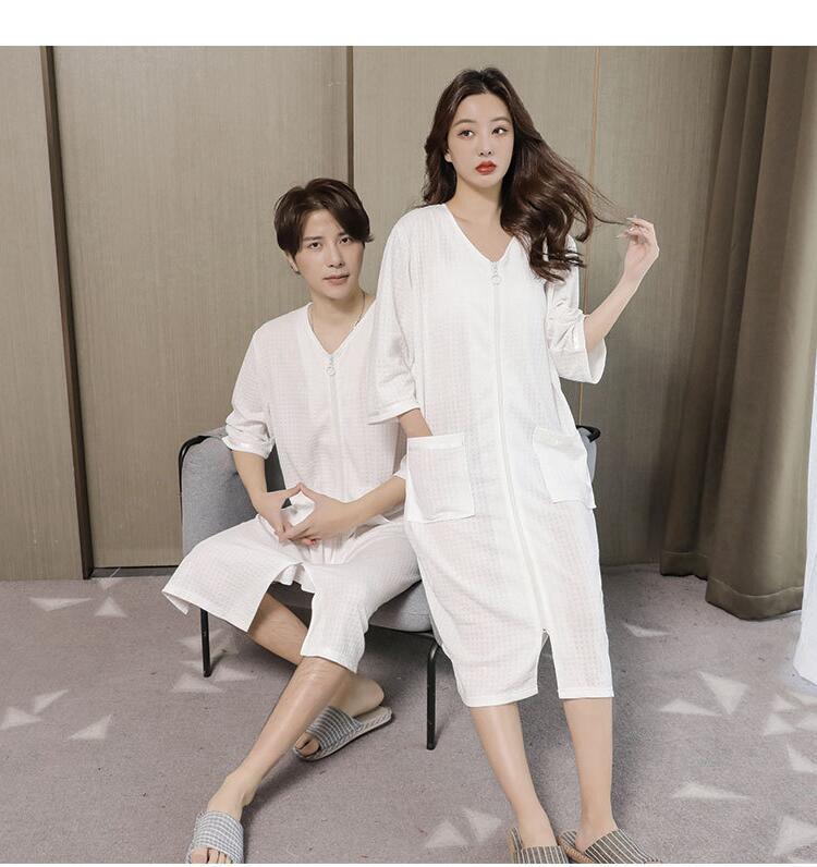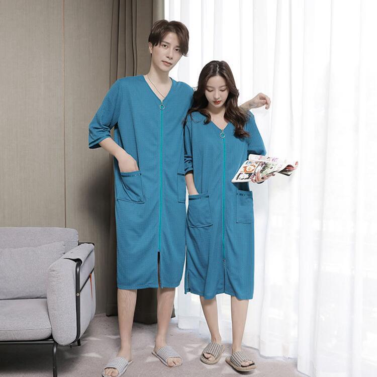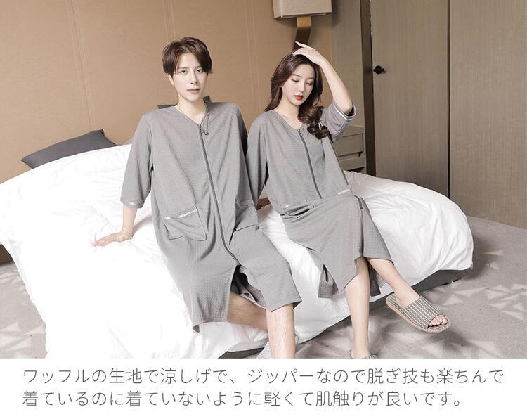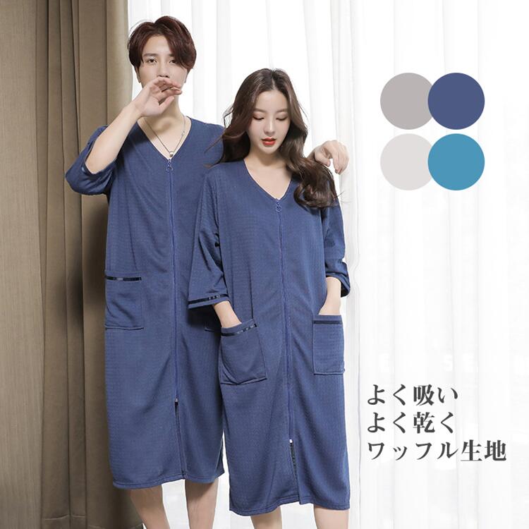 パジャマ バスローブ レディース メンズ 男女兼用 お揃い 薄手 コットン ワッフル生地 速乾 綿 ガウン 夏用 軽量 吸水 お風呂上り タオル地 カップル 部屋着 ルームウ ママ