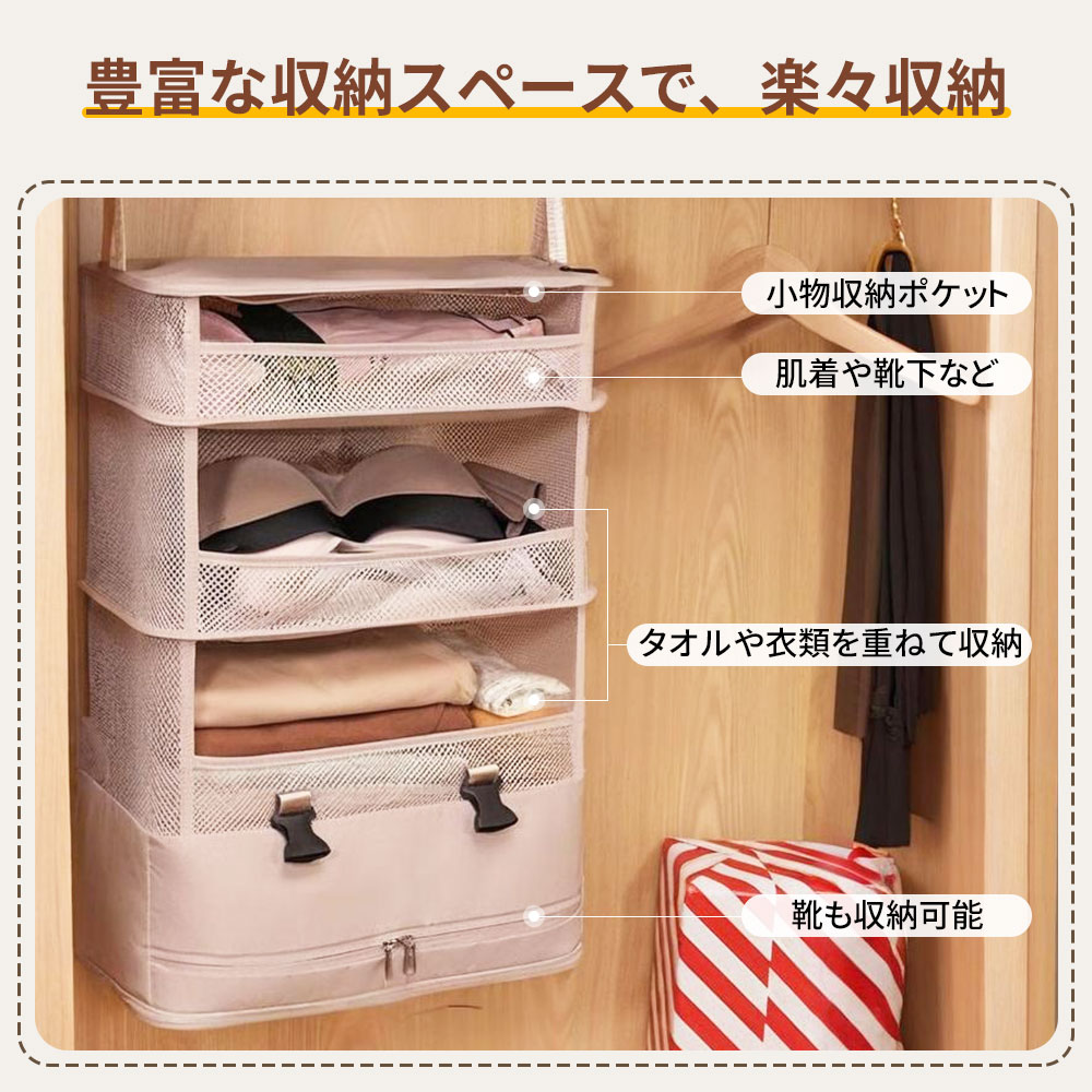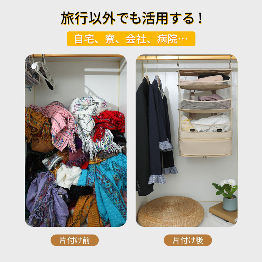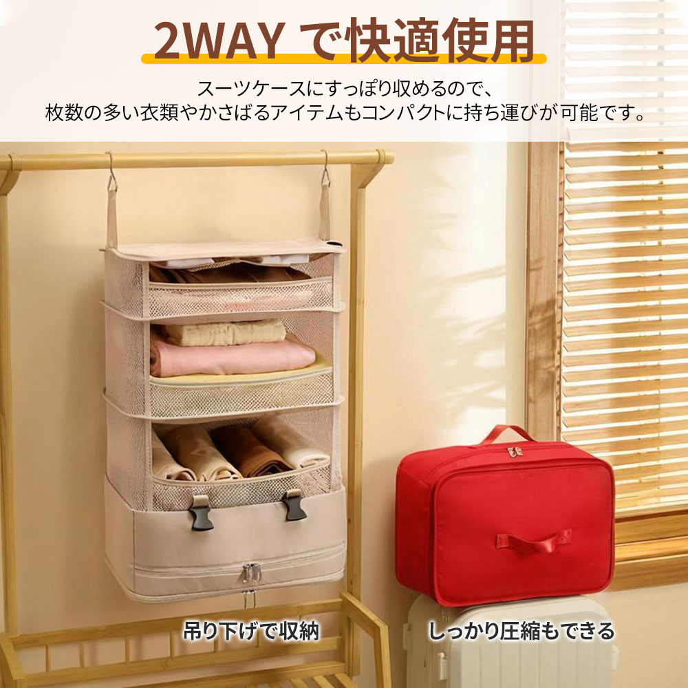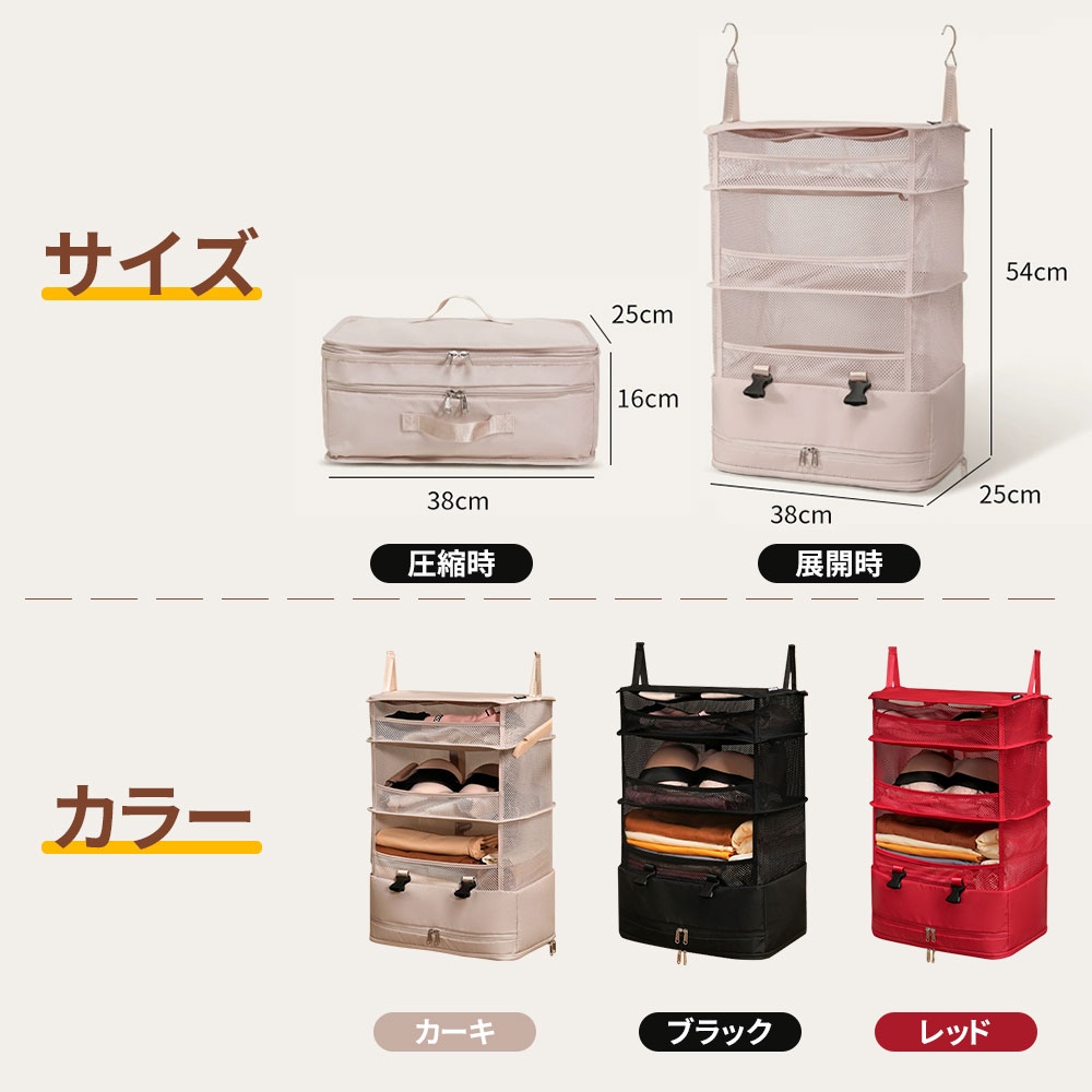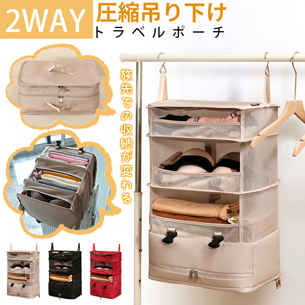 吊り下げ収納 トラベルポーチ 圧縮 圧 カーキ ブラック レッド