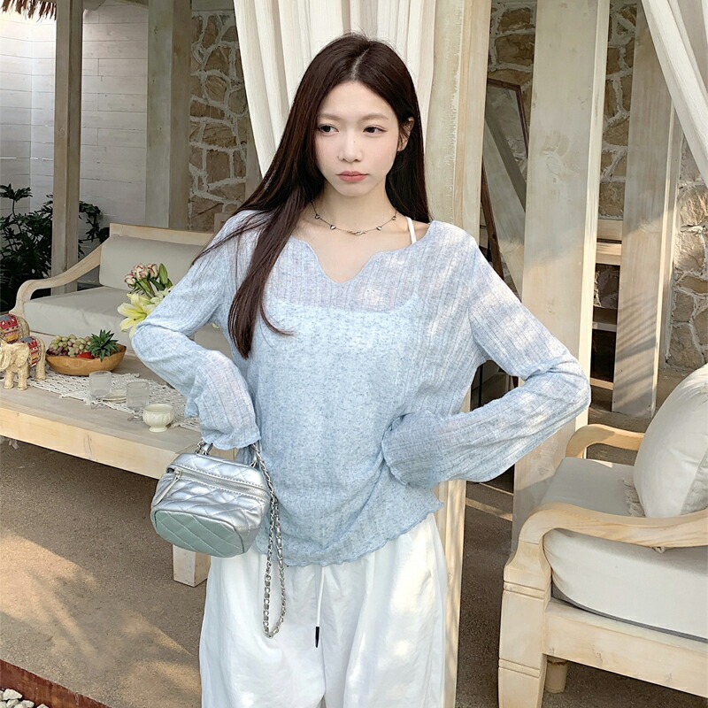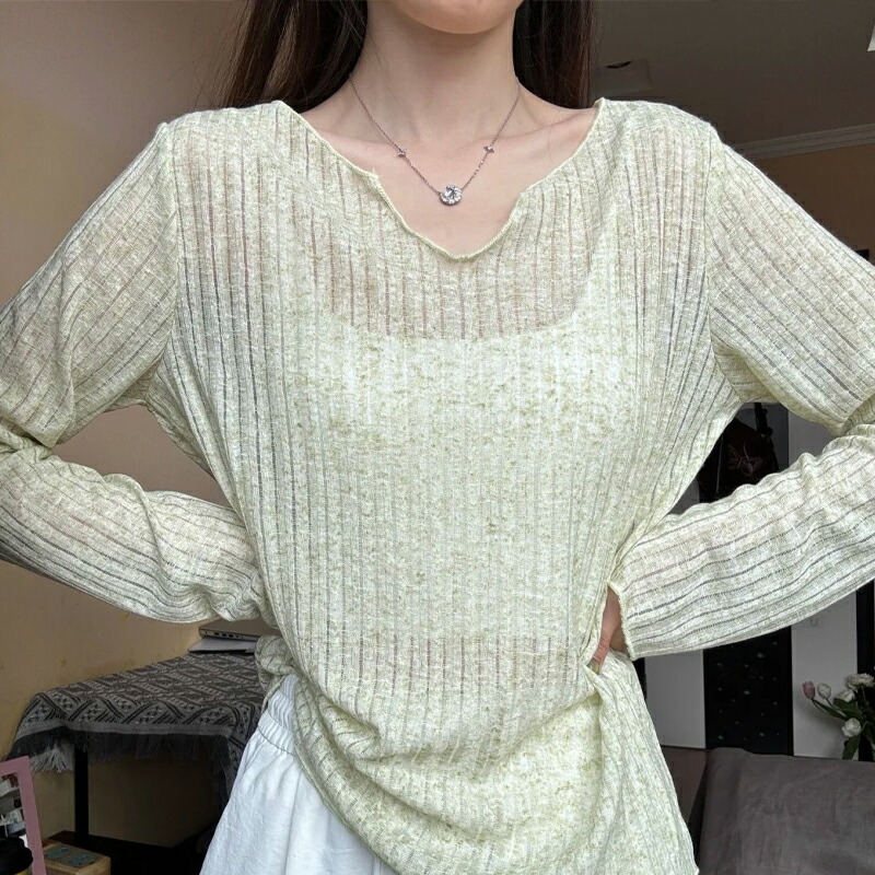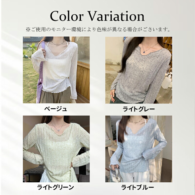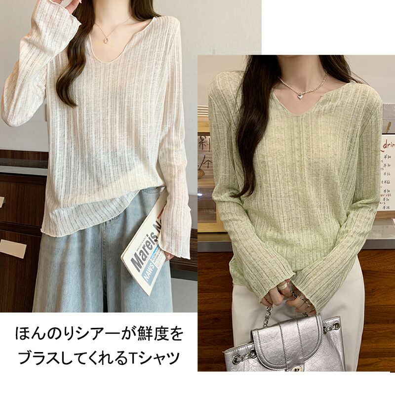 透け感 トップス Tシャツ 長袖 レデ トップス Tシャツ カットソー 特集 ベージュ ライトグレー ライトグリーン ライトブルー S M L XL(LL)