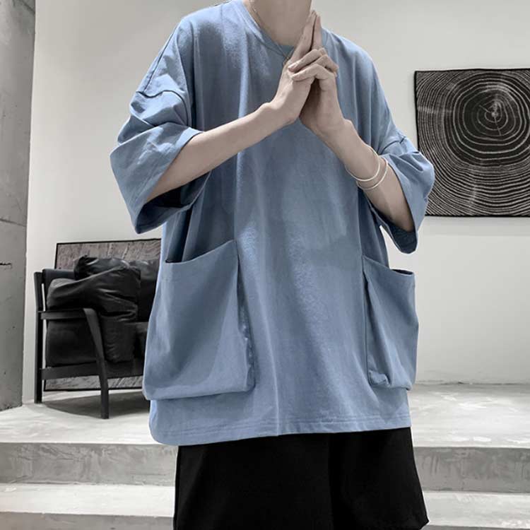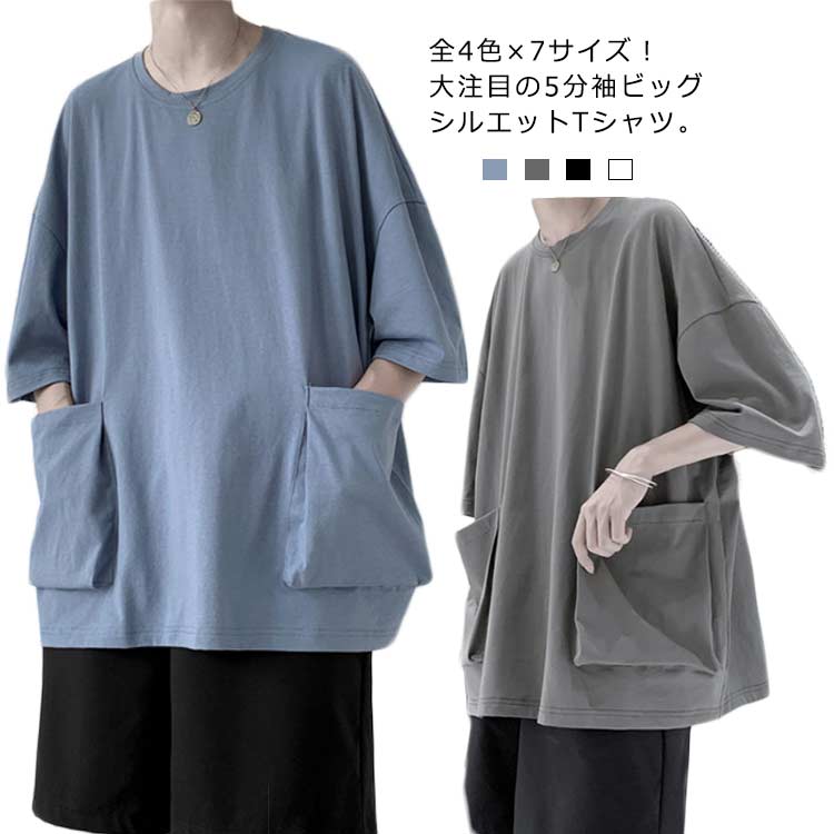 全4色×7サイズ ポケット付きビッグT メンズファッション 特集 ブラック ホワイト ブルー グレー S M L XL 2XL 3XL 4XL