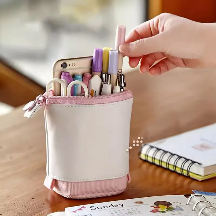 【ペンが探しやすい】シンプルで落ち着いた雰囲気のペンケースで、伸縮可能デザインを取りますので、ペン袋或いはペンポルダーとしても使えます。引っ張りやすい、立つこともできる。文房具をコンパクトにまとめられるので、ペン袋ーを上下に動かすとペンホルダーになれ、必要なものをスマートに取り出しやすい、様々なシーンで活躍してくれます。