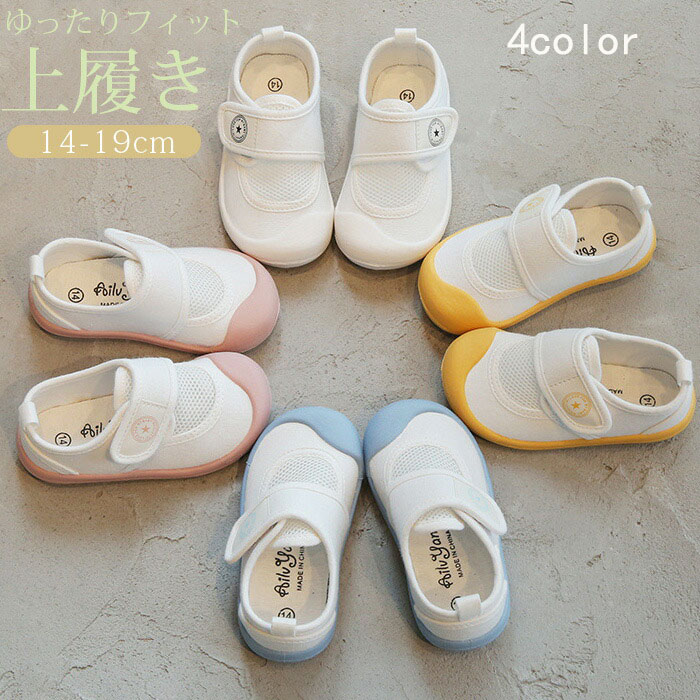男の子女の子上履き 子供 キッズ 上靴 キッズ 靴 上履き 早い者勝ち ブルー ピンク イエロー ホワイト 14cm 15cm 16cm 17cm 18cm 19cm