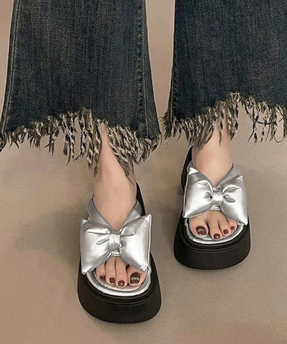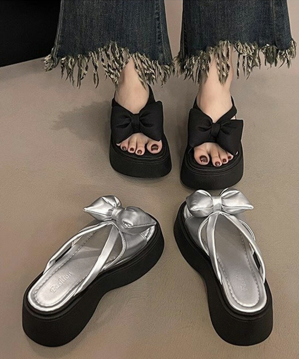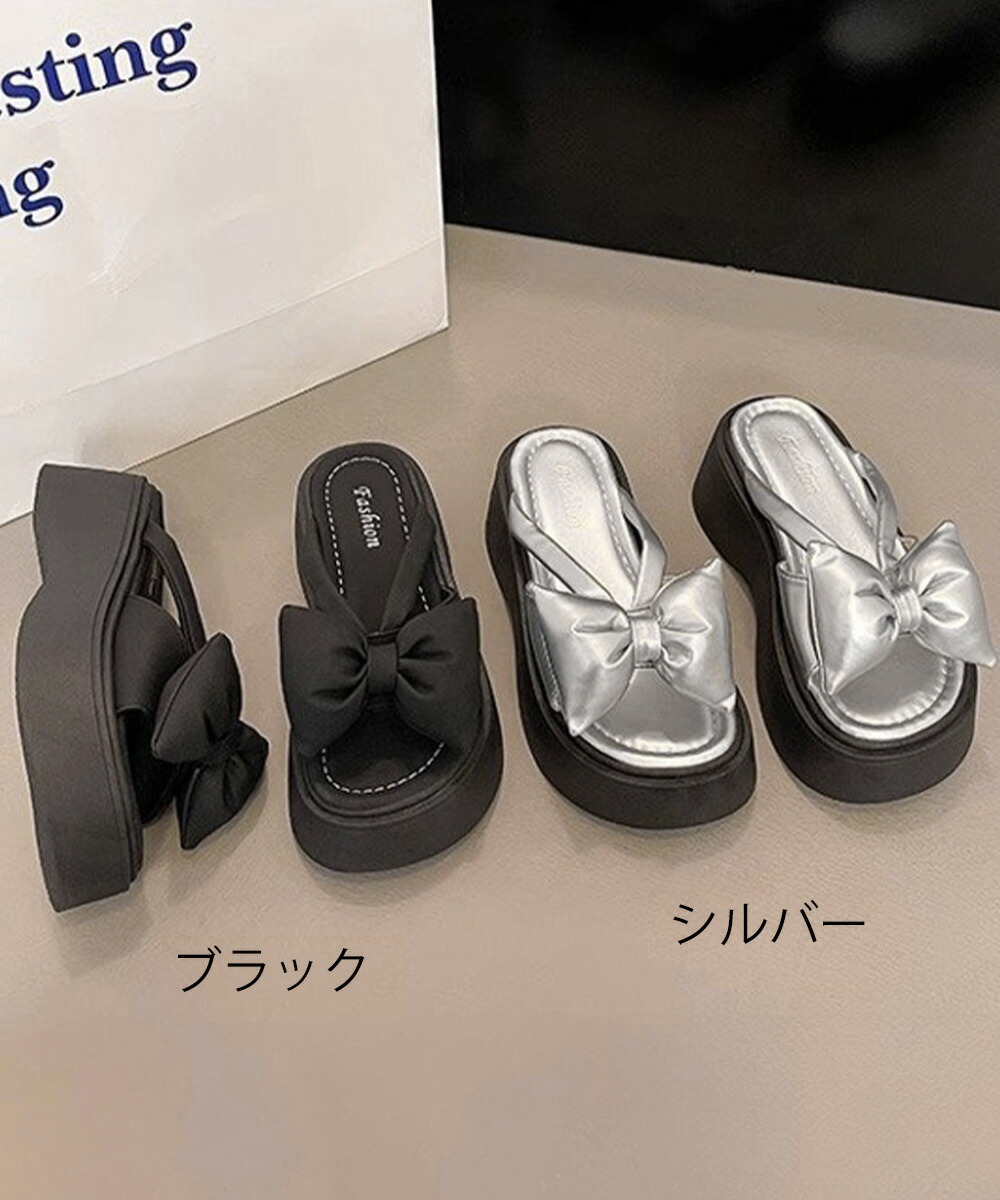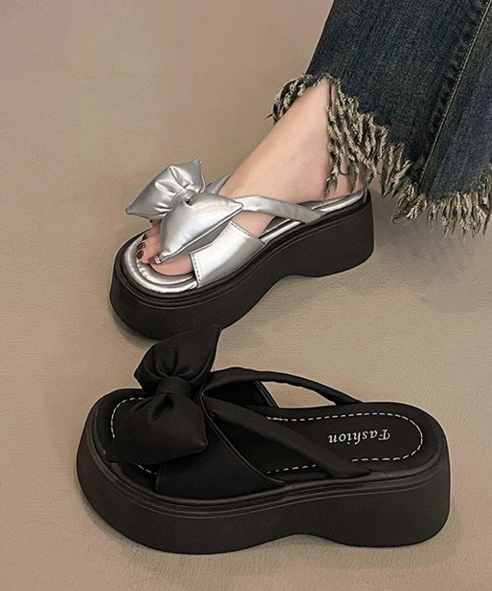 リボンサンダルレディース厚底サンダル夏 レディース靴 サンダル コンフォートサンダル 豊富な品揃え シルバー ブラック 22.5cm 23.0cm 23.5cm 24.0cm 24.5cm
