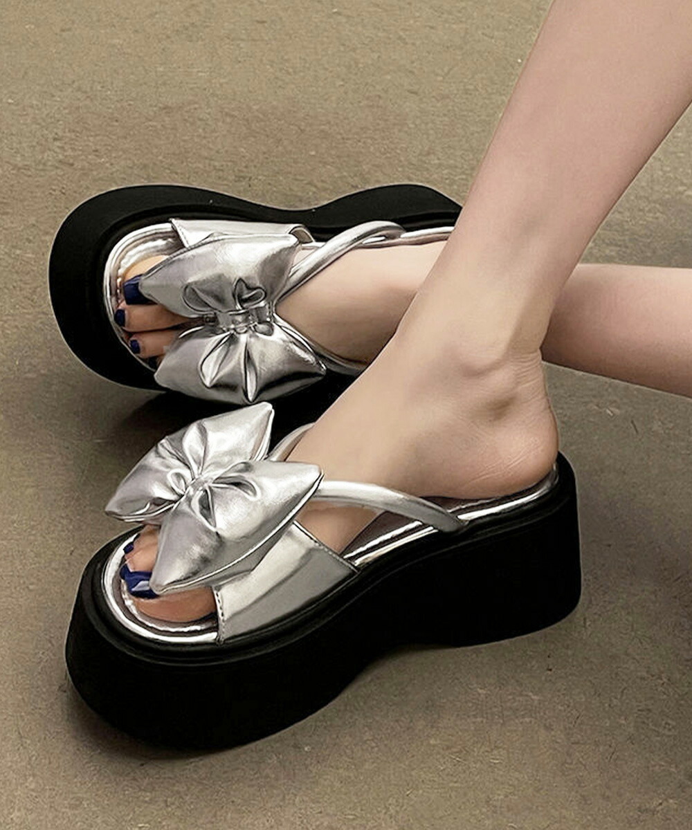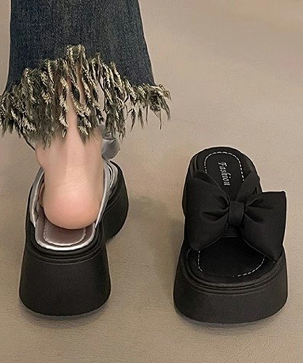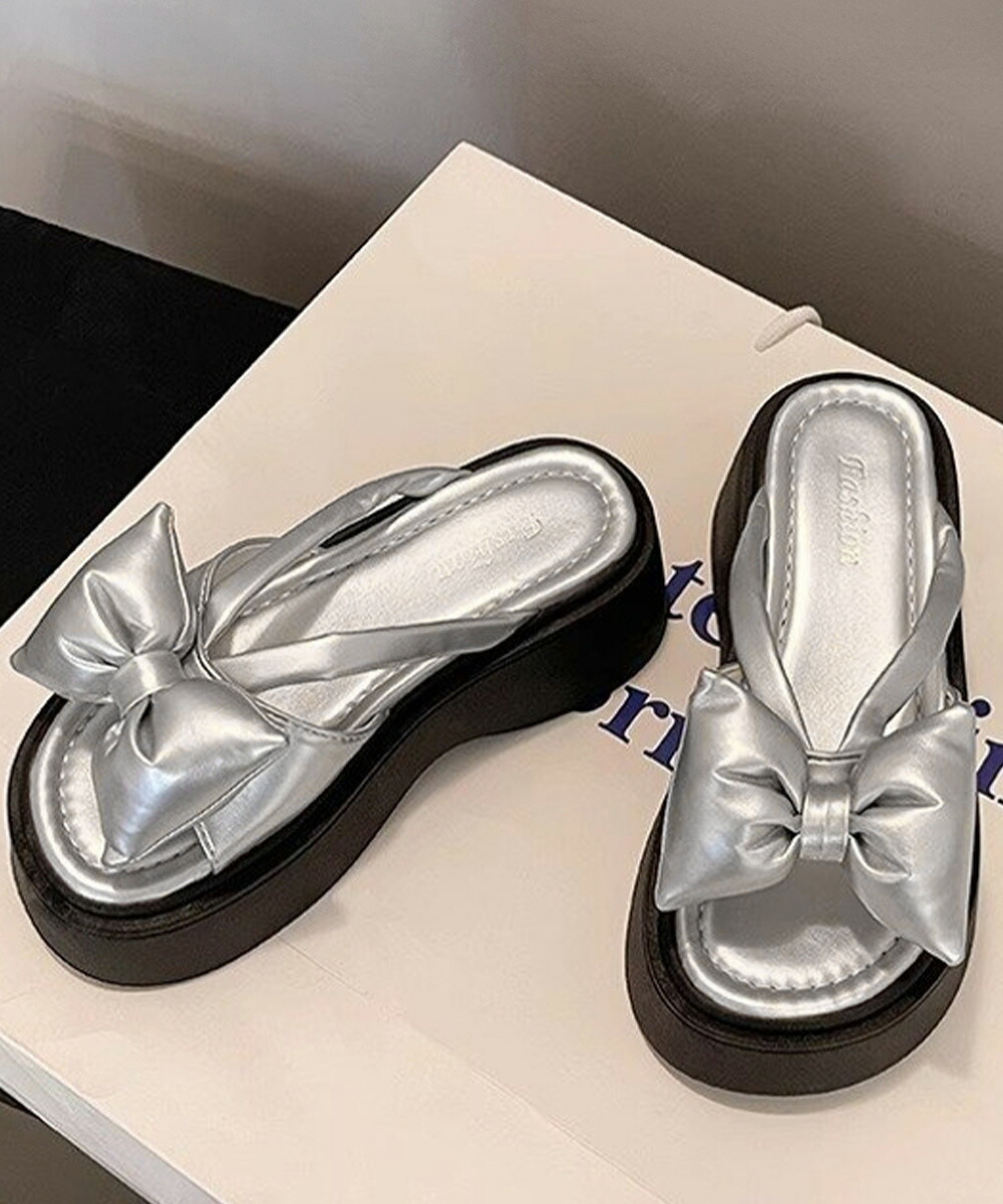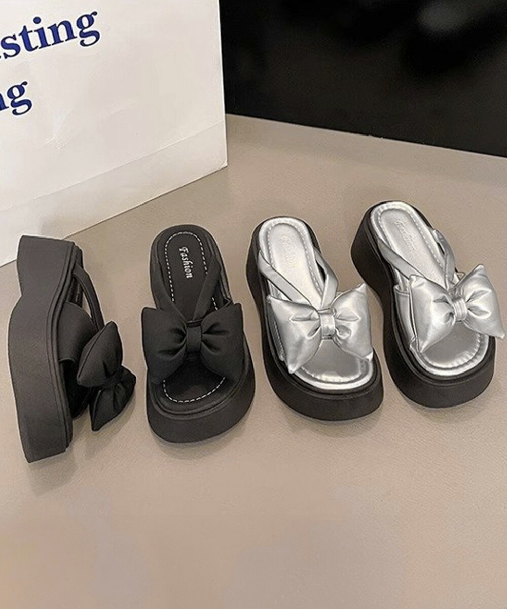 リボンサンダルレディース厚底サンダル夏 レディース靴 サンダル コンフォートサンダル 豊富な品揃え シルバー ブラック 22.5cm 23.0cm 23.5cm 24.0cm 24.5cm