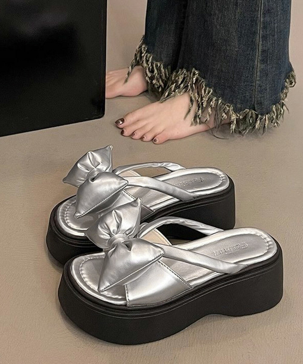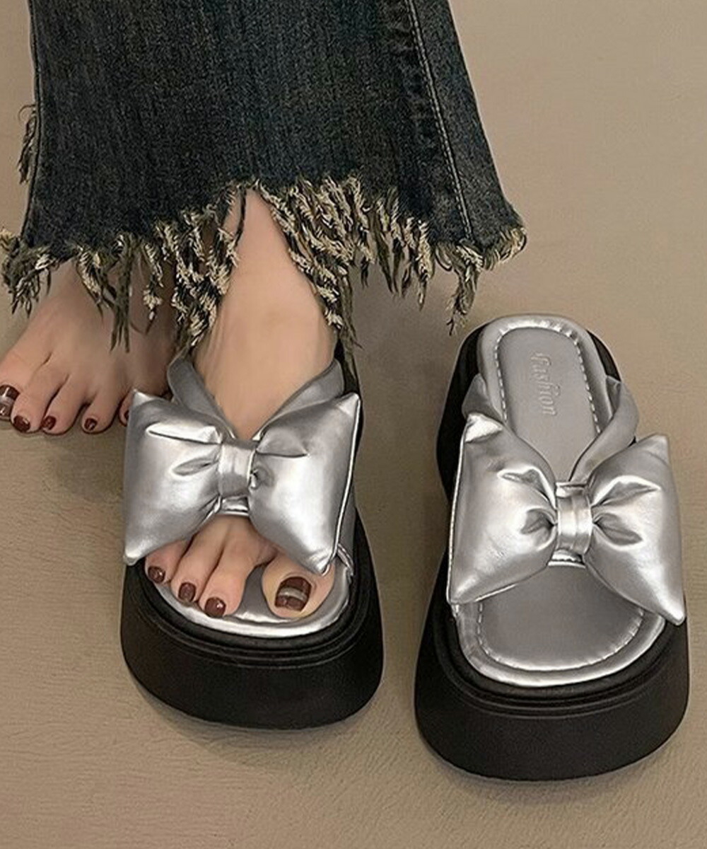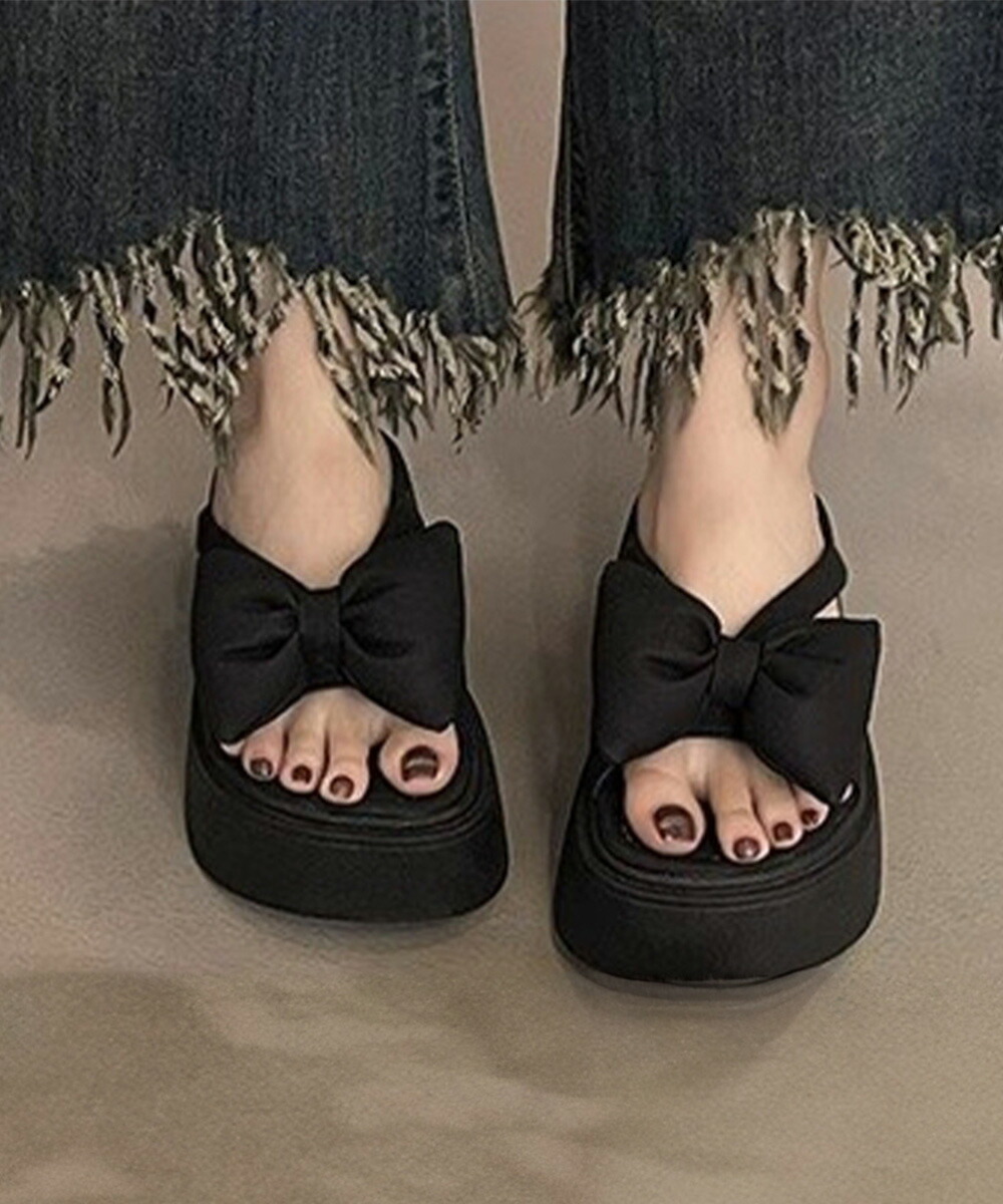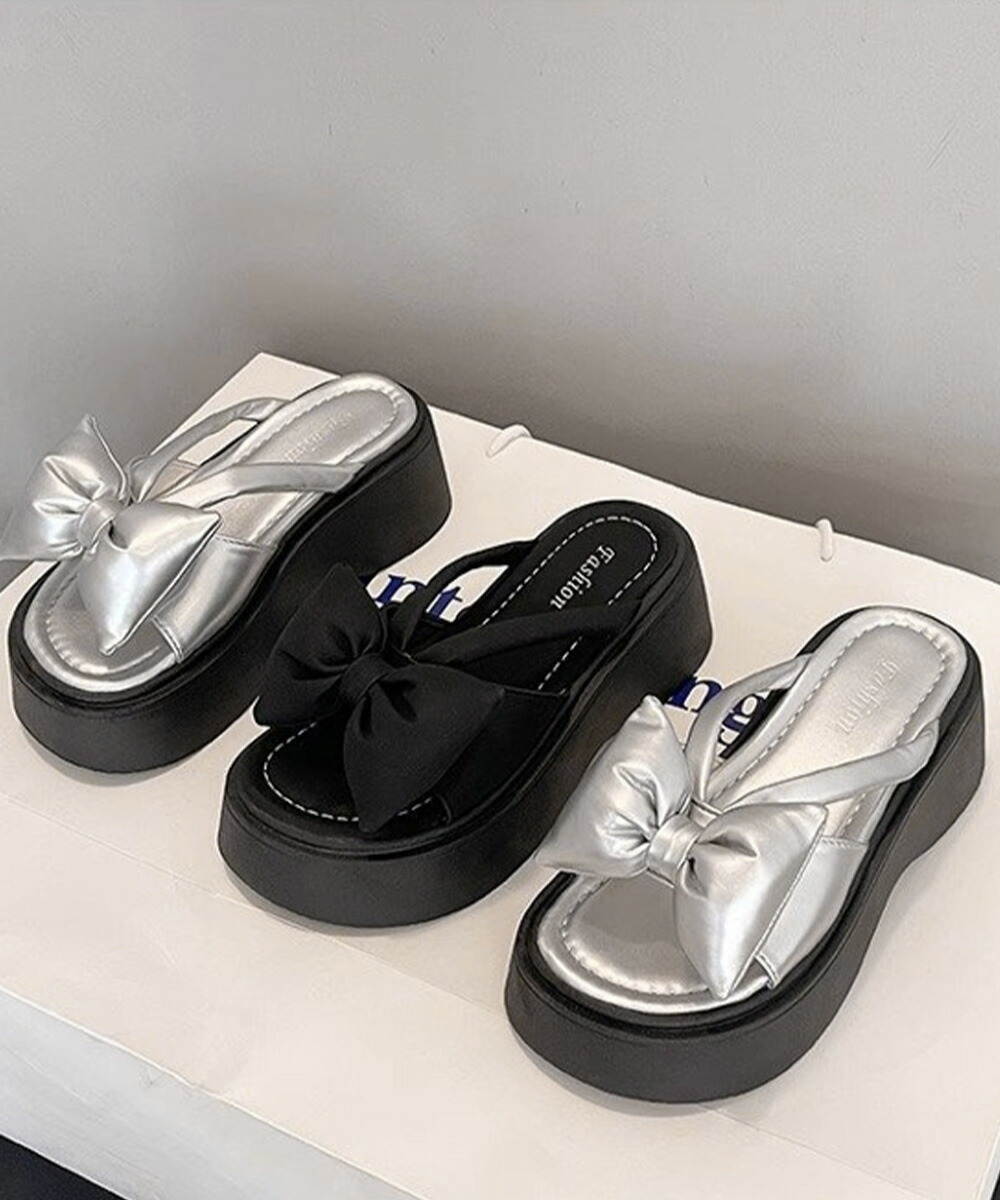 リボンサンダルレディース厚底サンダル夏 レディース靴 サンダル コンフォートサンダル 豊富な品揃え シルバー ブラック 22.5cm 23.0cm 23.5cm 24.0cm 24.5cm