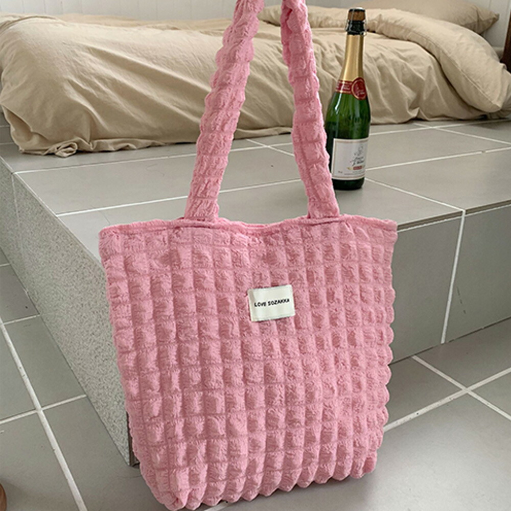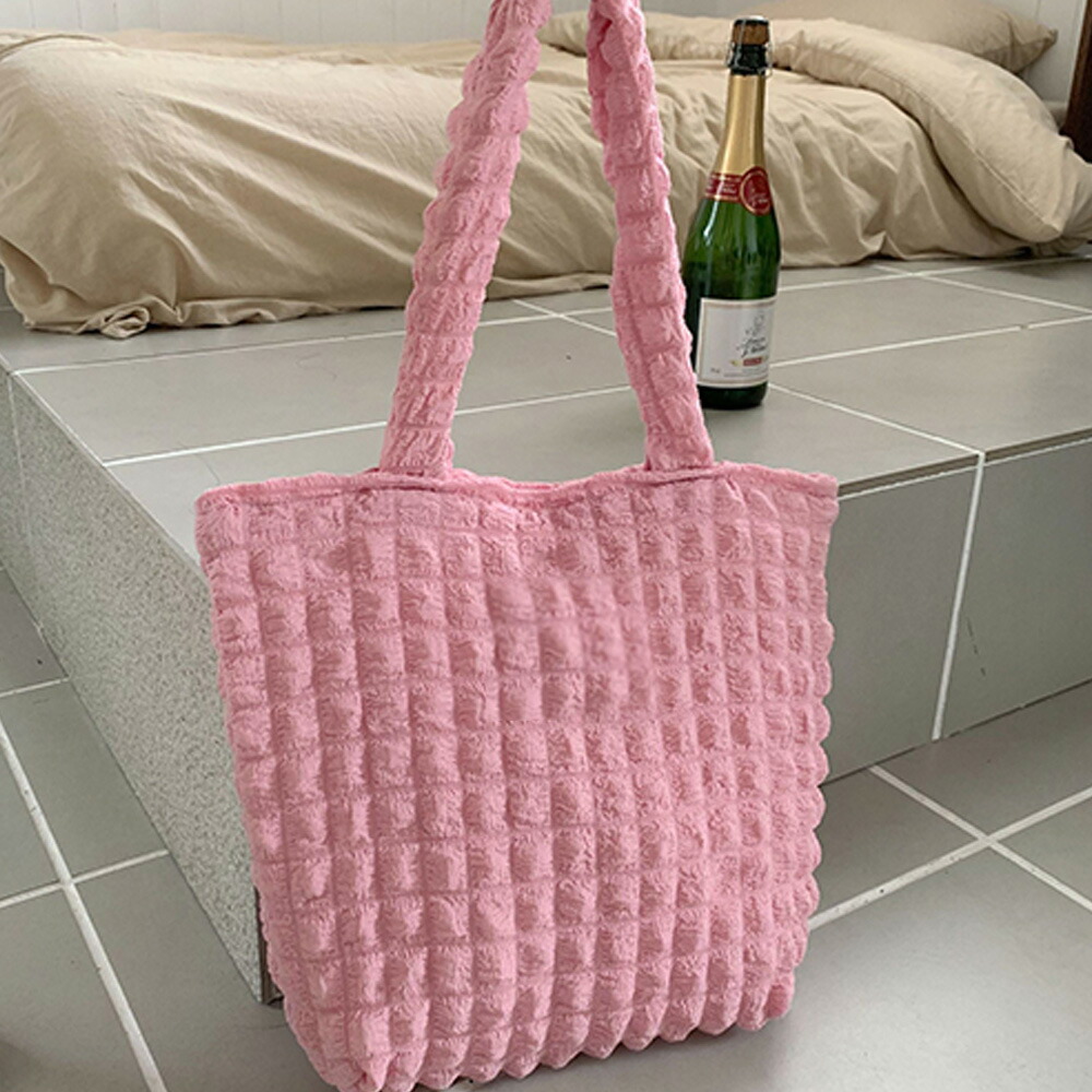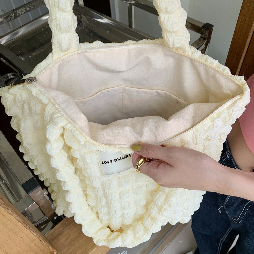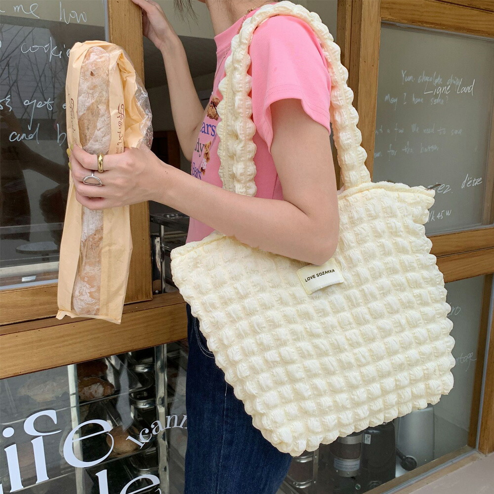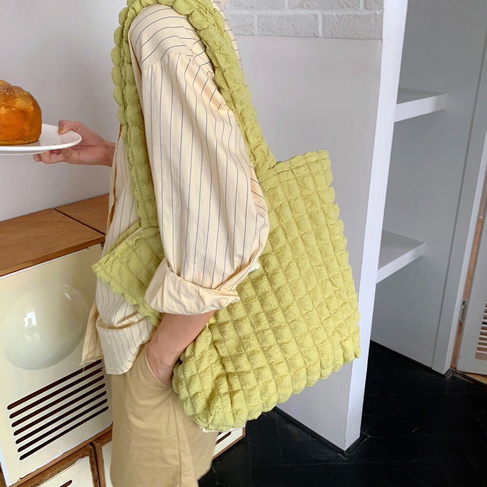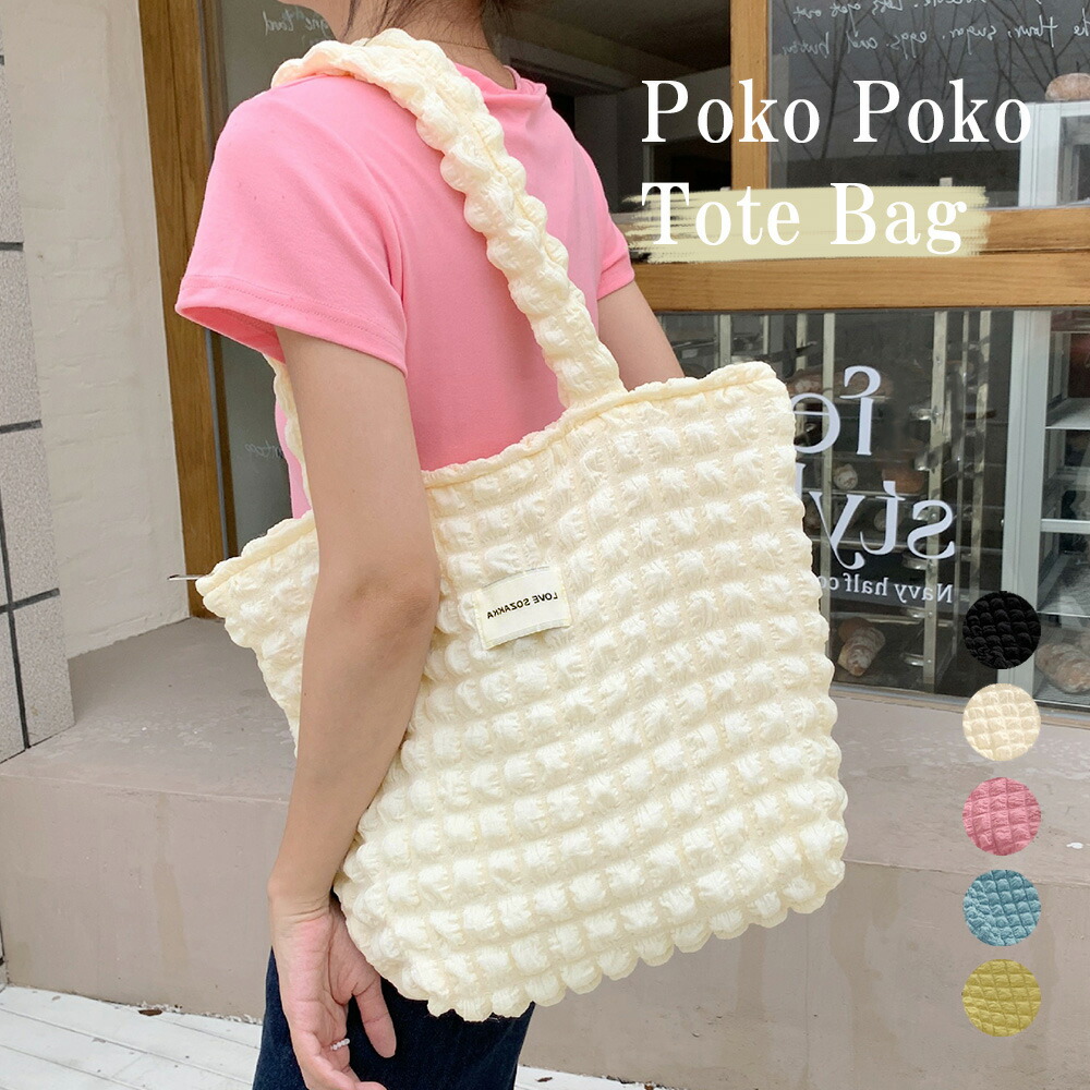 ぽこぽこトートバッグ ワッフル風バッグ バッグ レディースバッグ トートバッグ 新登場! アイボリー イエローグリーン くすみブルー ピンク ブラック
