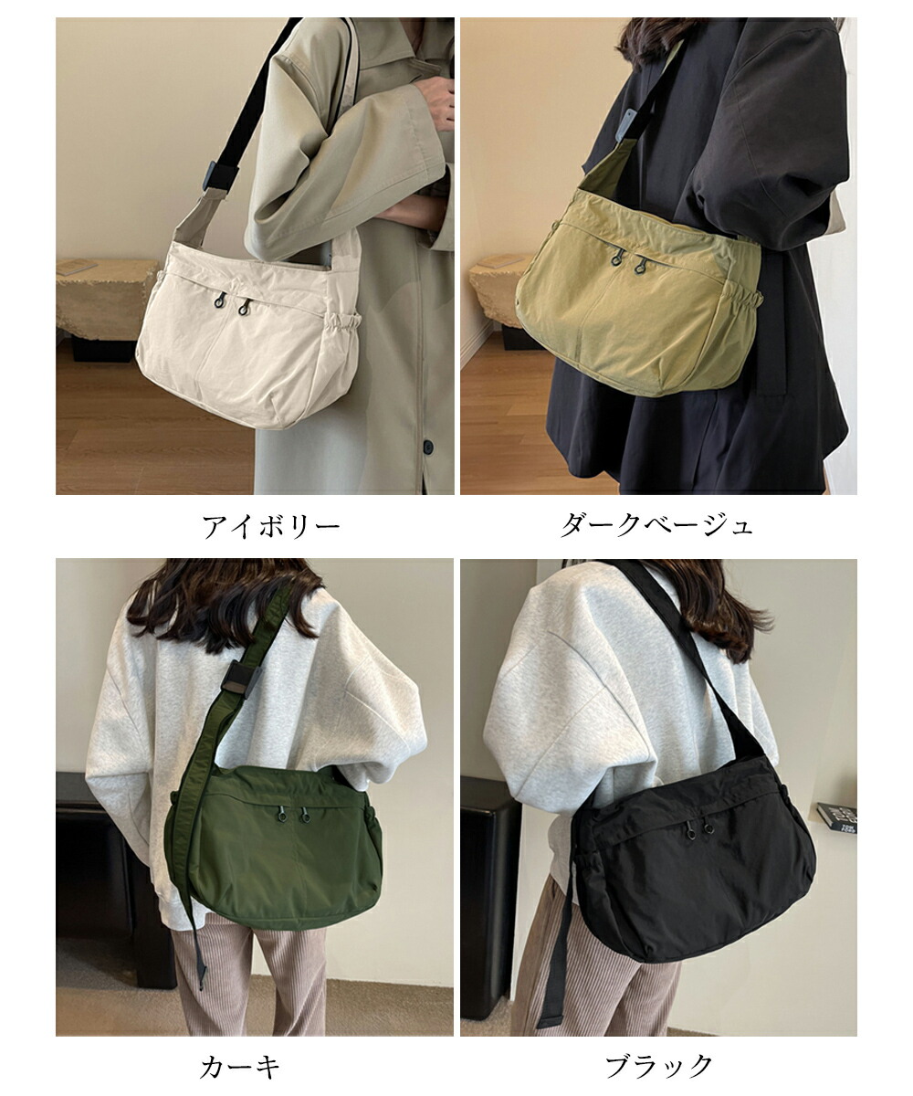 ショルダーバッグ 大容量 軽量 ナイロ バッグ 小物 ブランド雑貨 新作 アイボリー カーキ ダークベージュ ブラック