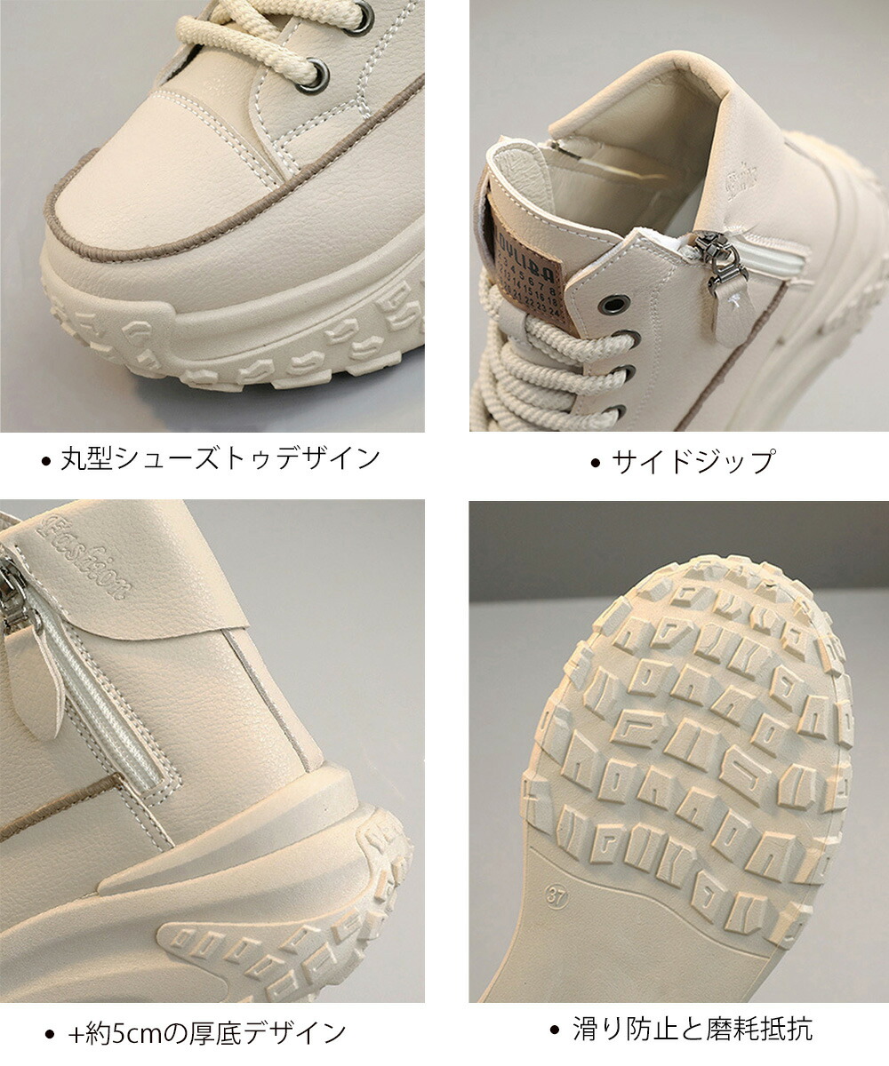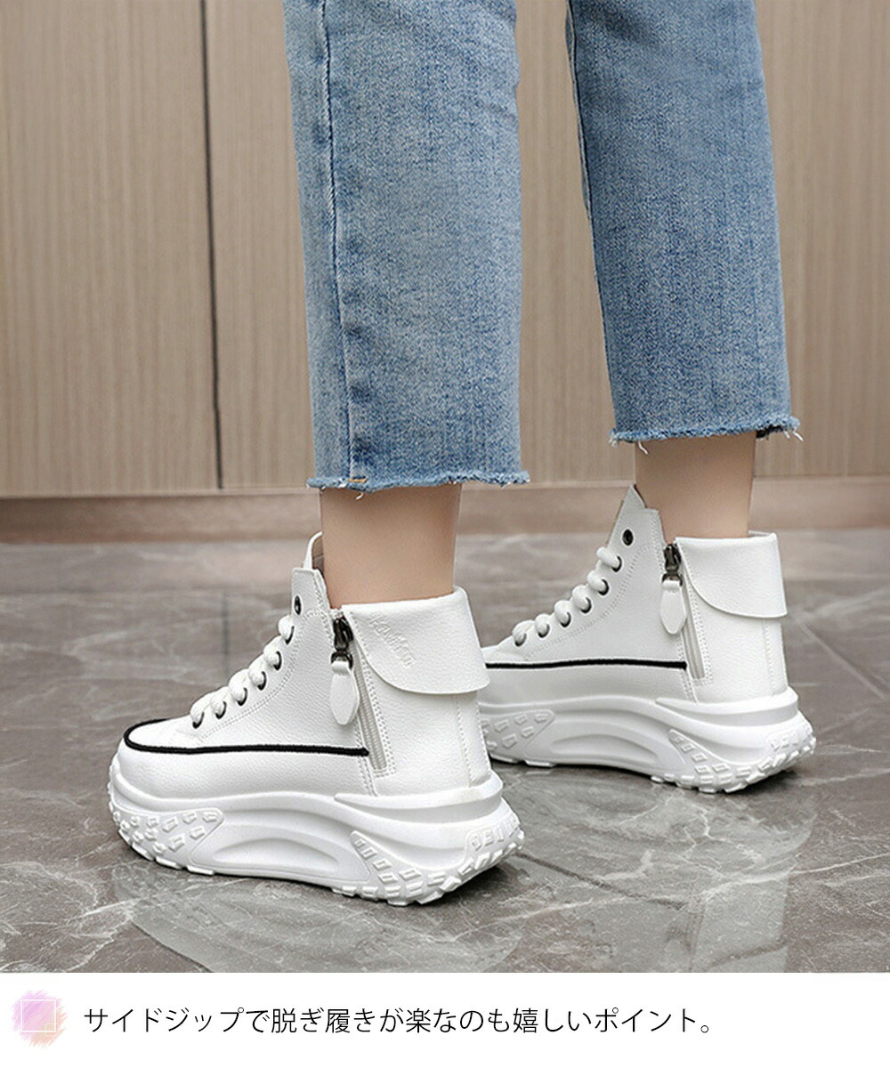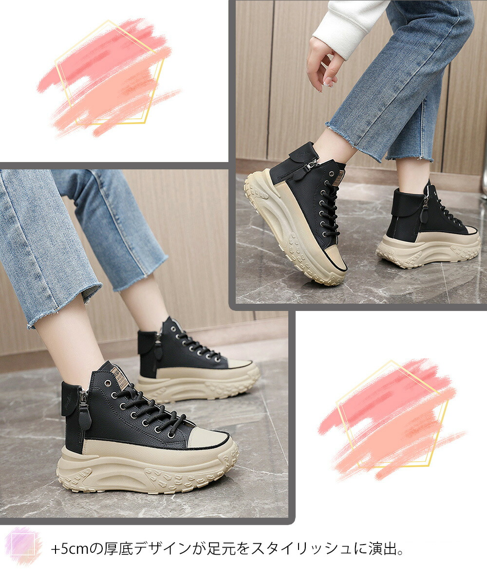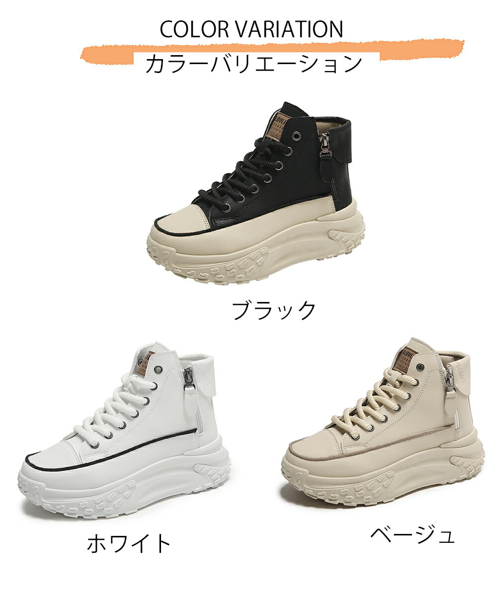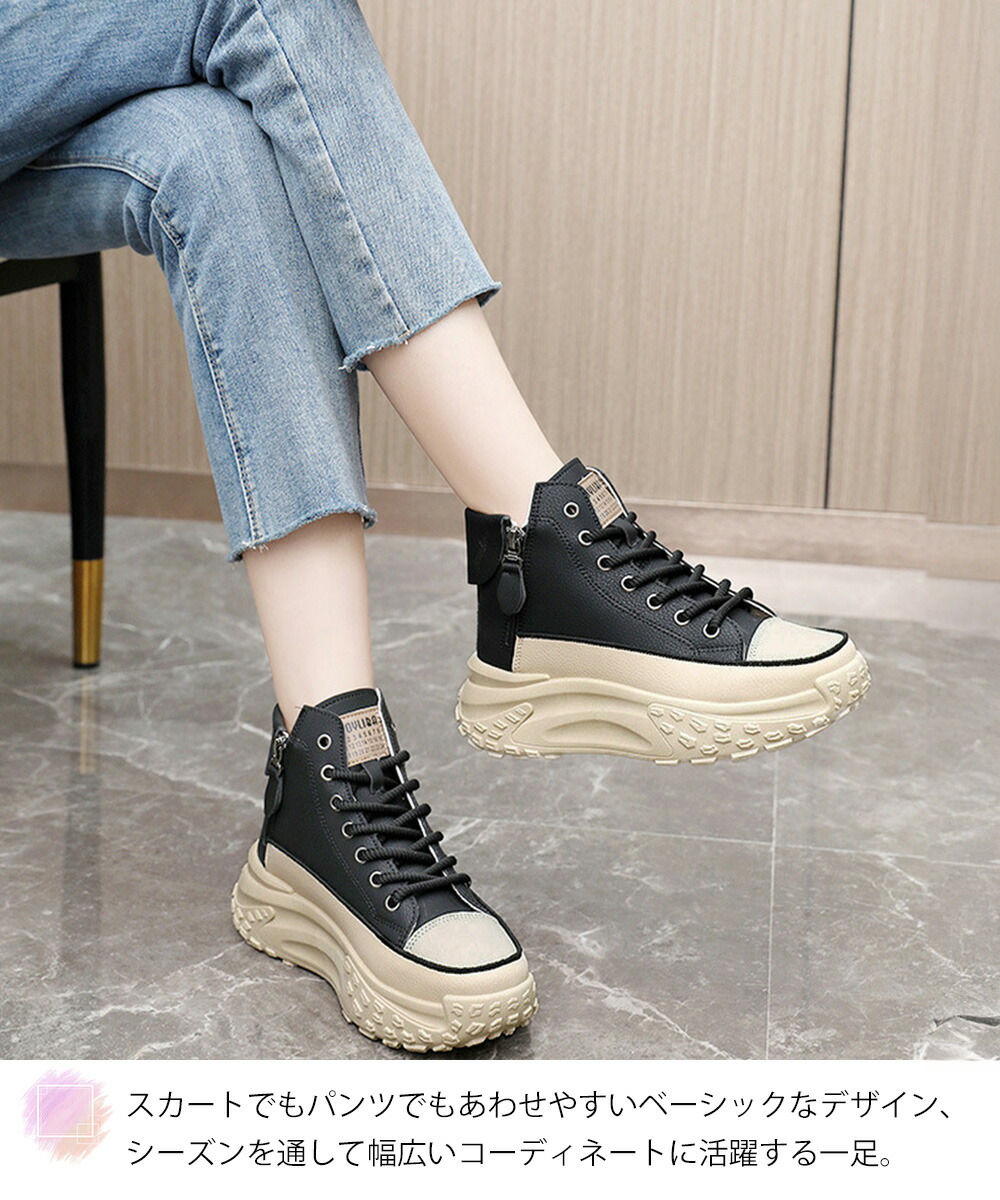 ハイカットスニーカー レディース 厚底 靴 通販 ブラック ベージュ ホワイト 22.5cm(35) 23.0cm(36) 23.5cm(37) 24.0cm(38) 24.5cm(39)